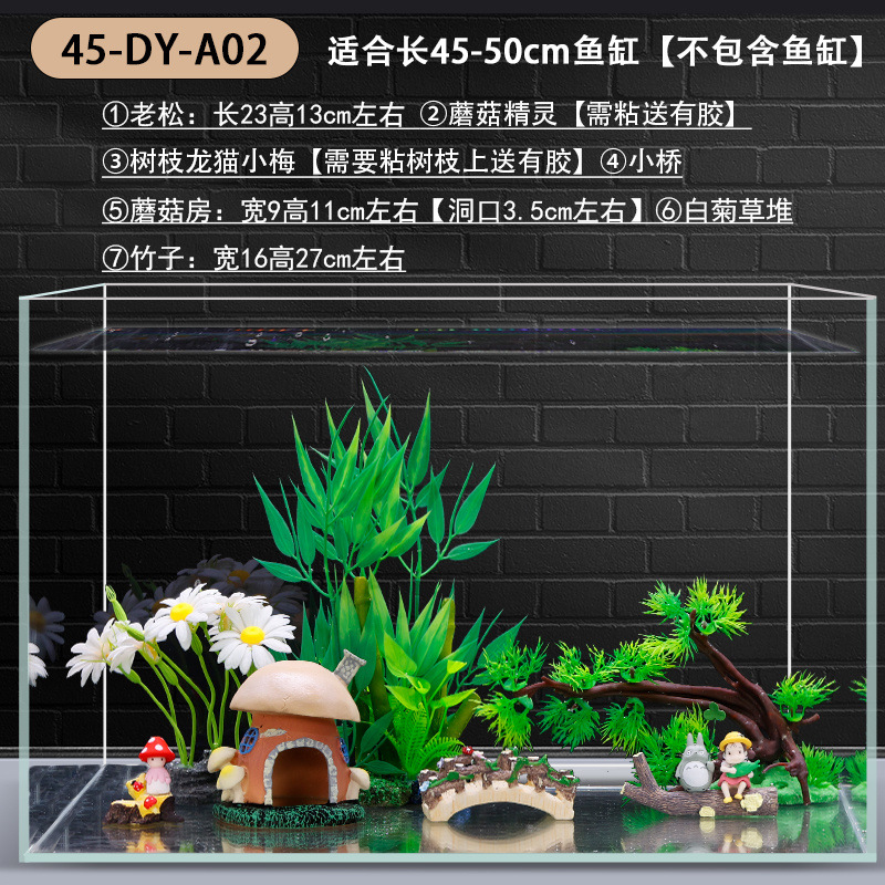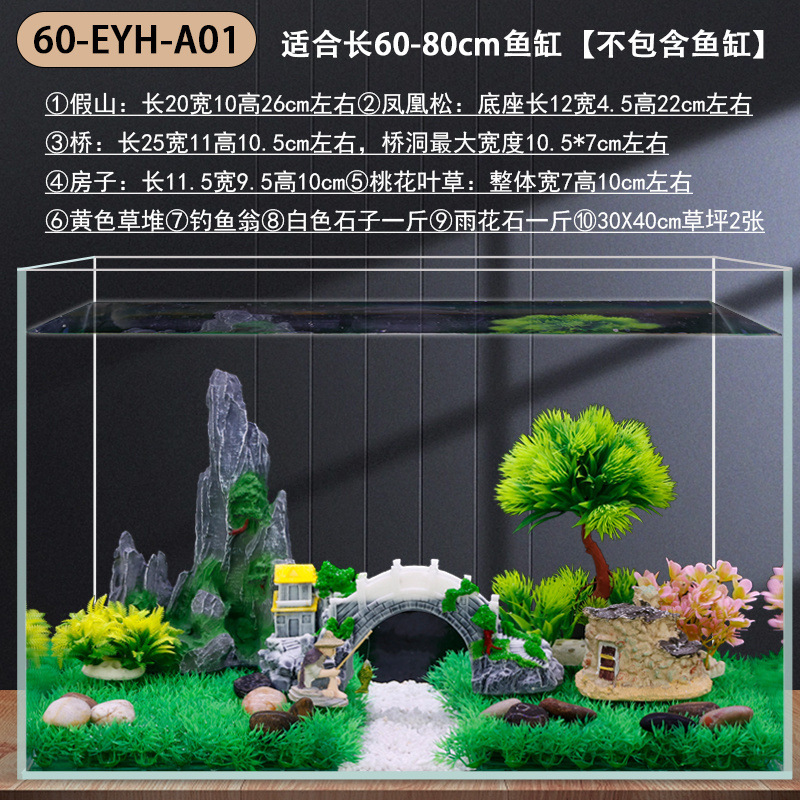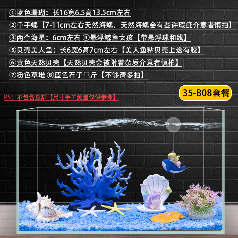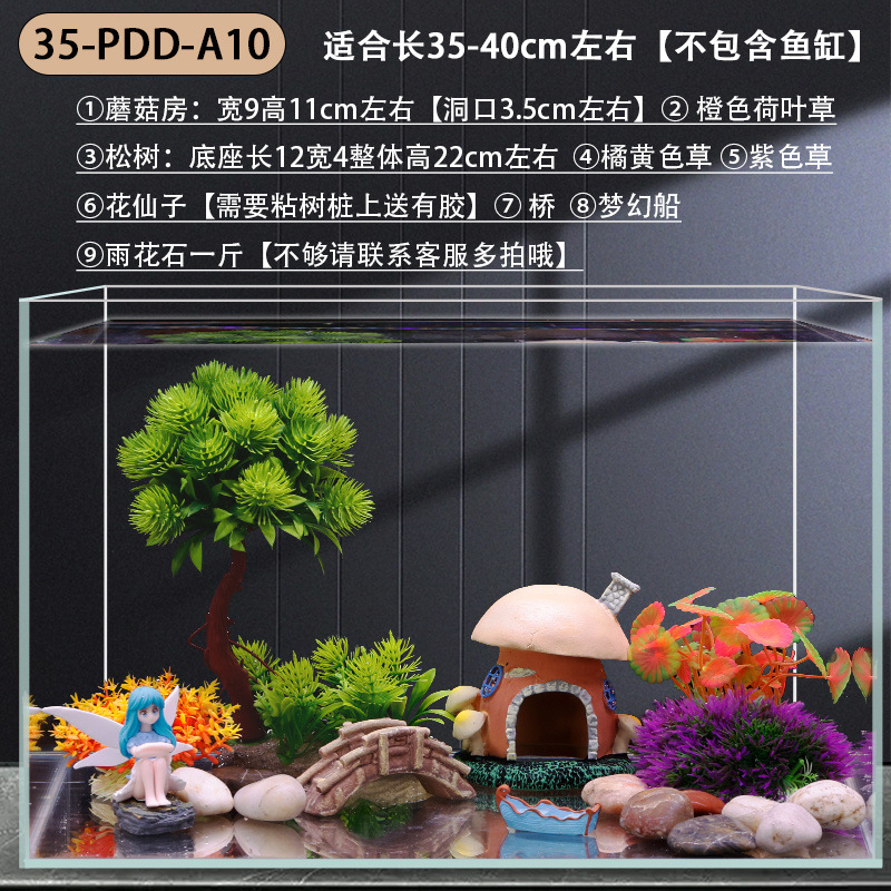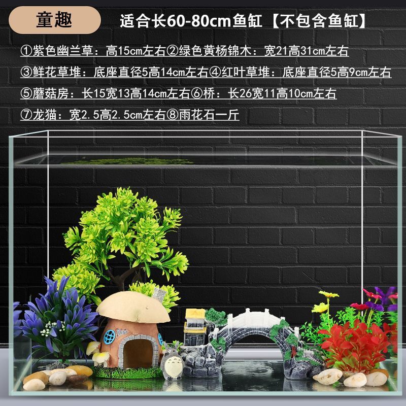 수조 조경 장식 패키지, 수생 식물 작은 장식품, 가짜 바위, 모래 바닥, 모래 수족관 장식 식물 세트, 전체 세트