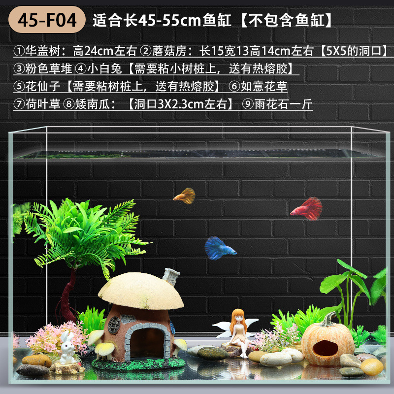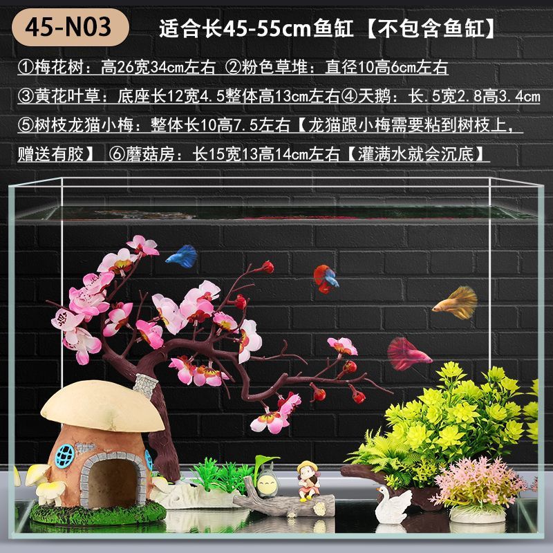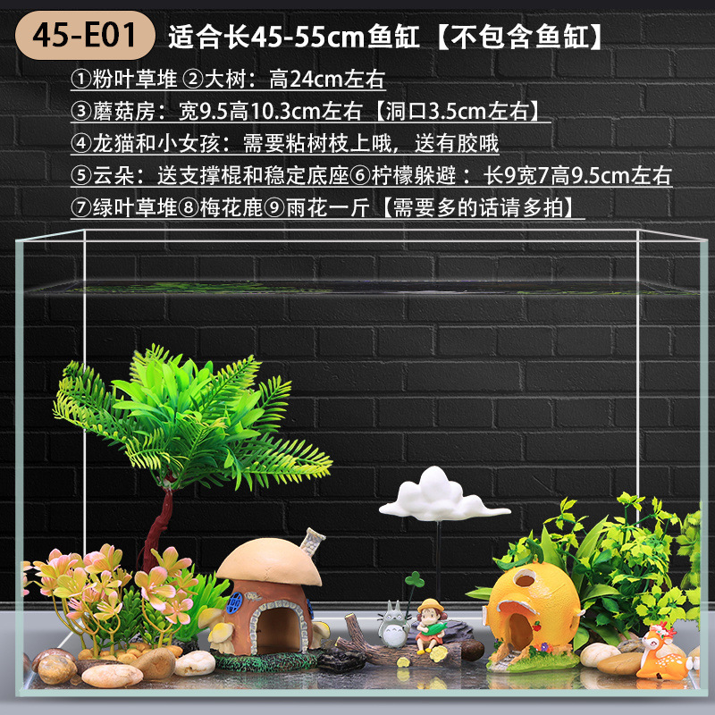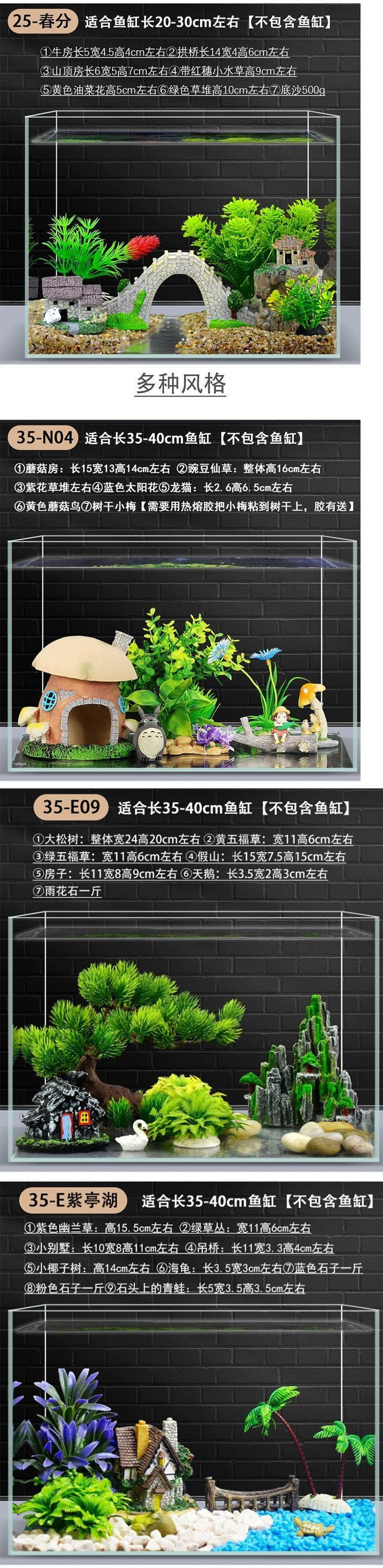 수조 조경 장식 패키지, 수생 식물 작은 장식품, 가짜 바위, 모래 바닥, 모래 수족관 장식 식물 세트, 전체 세트