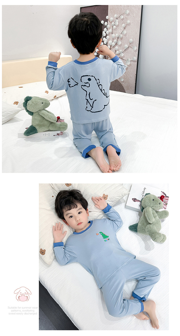 어린이 여름 모달 얇은 긴팔 어린이 집 옷 봄과 가을 소년 아기 세트 잠옷