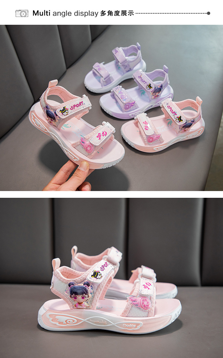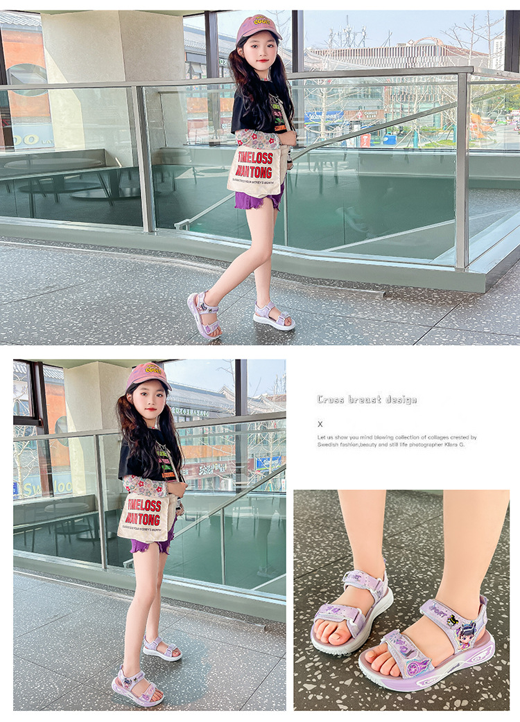 소녀 매직 어린이 샌들 공주 2025 여름 만화 오픈 발가락 중 큰 어린이 해변 신발