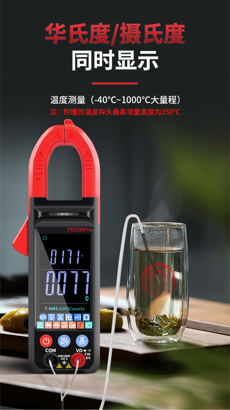 디지털 클램프 멀티미터 전류계 온도 주파수 커패시턴스 완전 자동 스마트 멀티미터 고정밀 클램프 미터