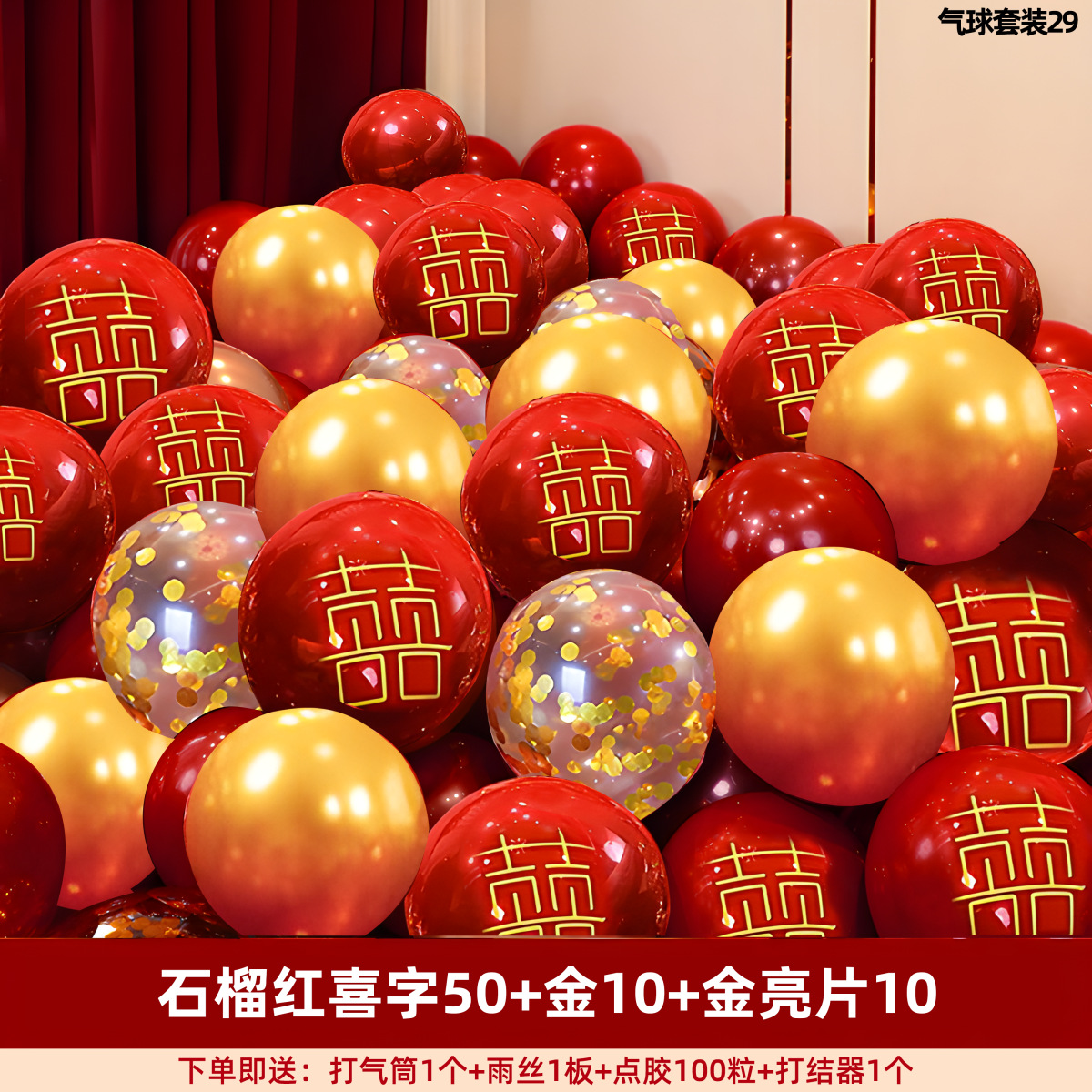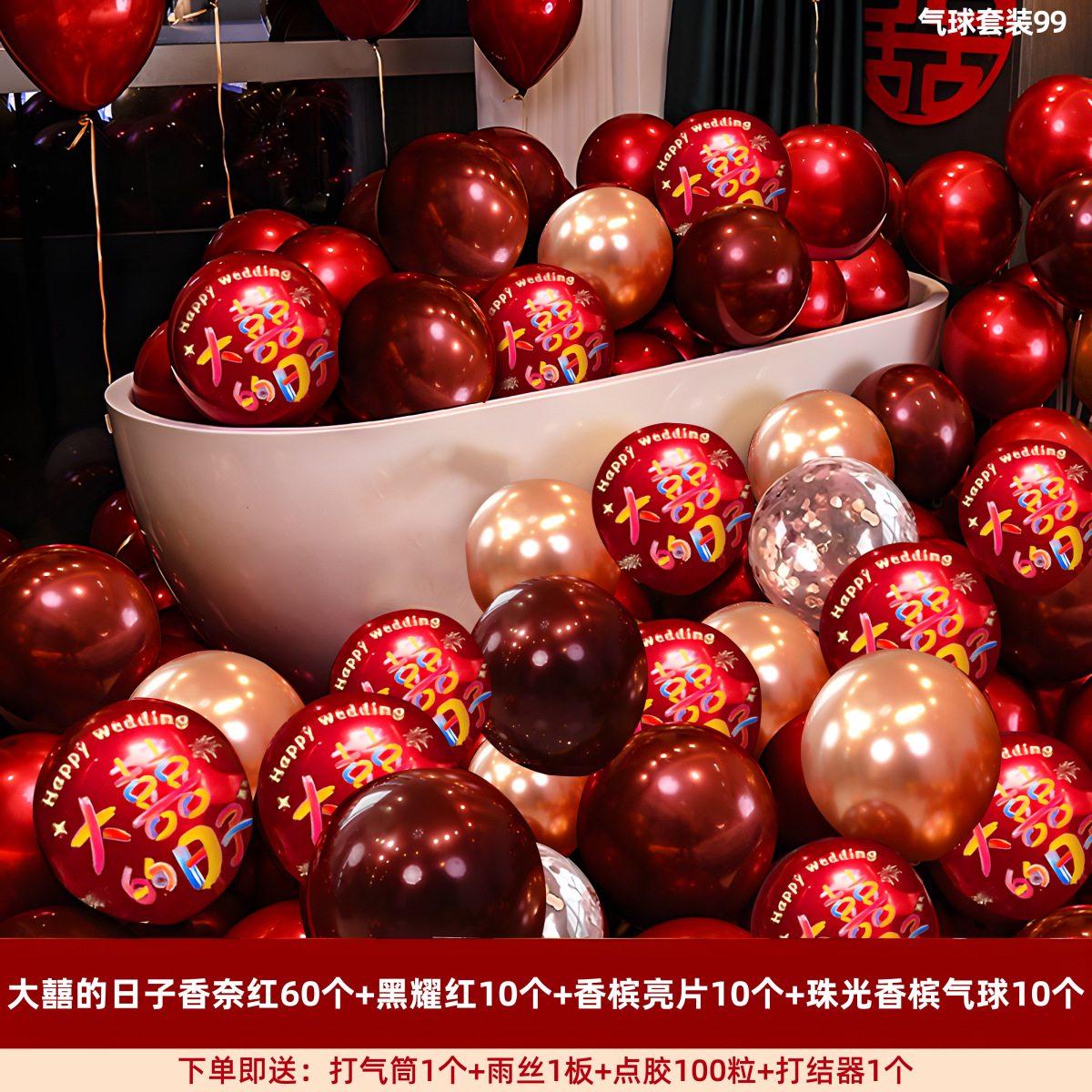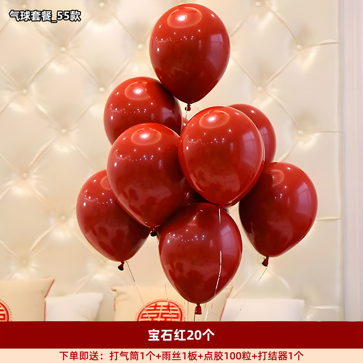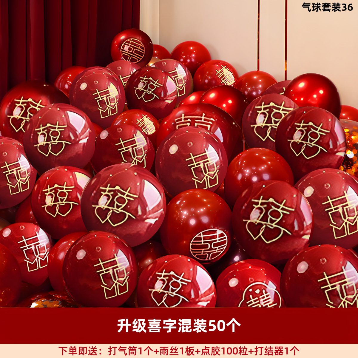 결혼식 풍선 배열 붉은 축제 분위기 원피스 여자의 결혼식 방 침실 장식 장면 결혼식 세트스토어 가기