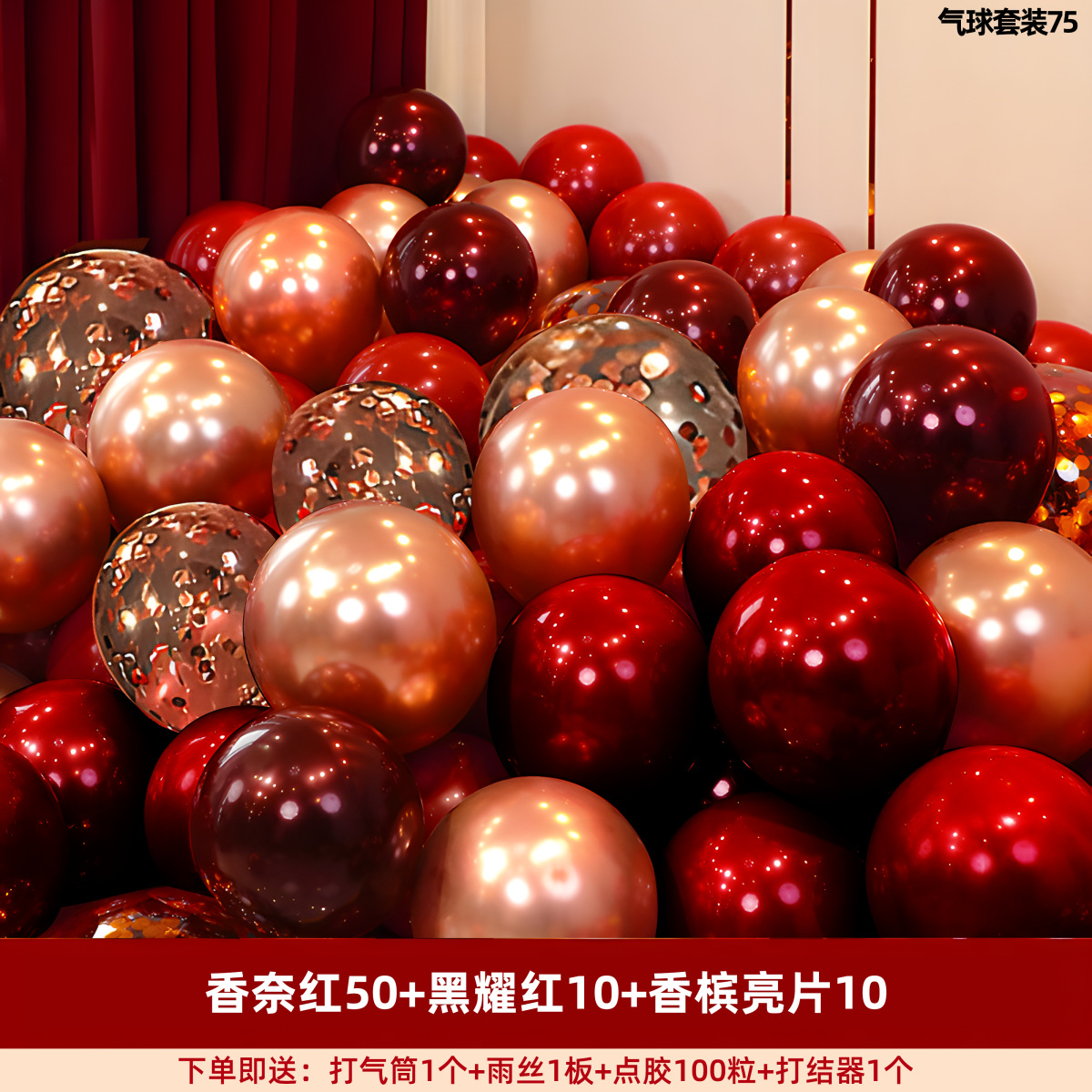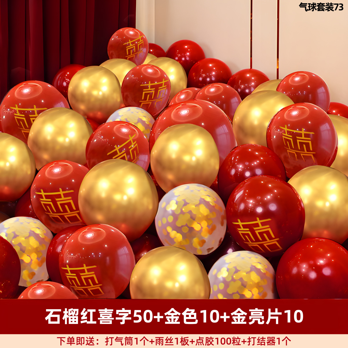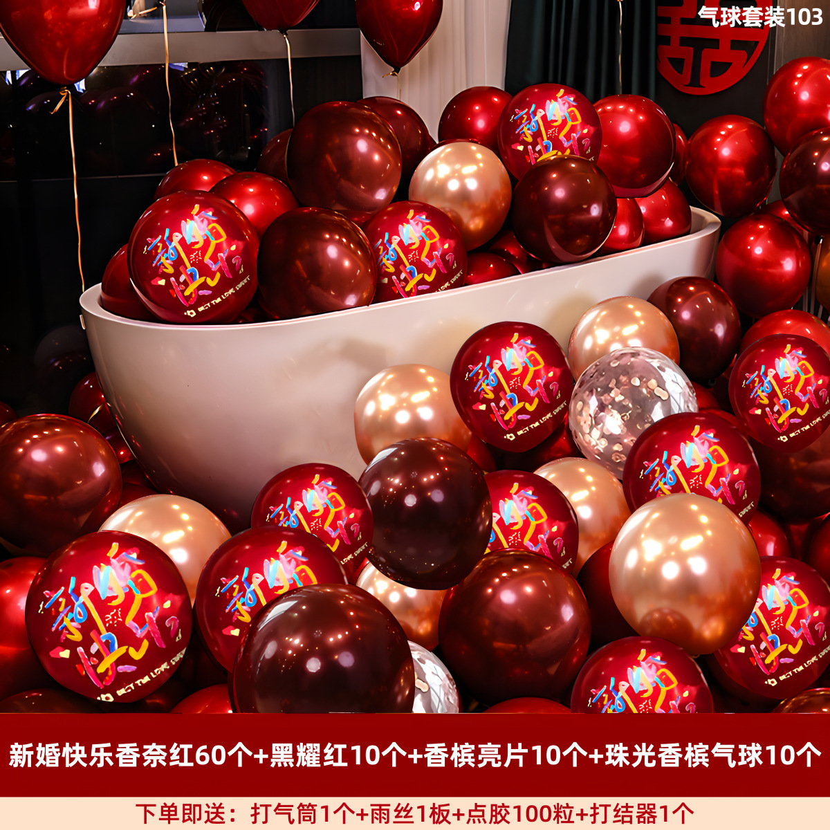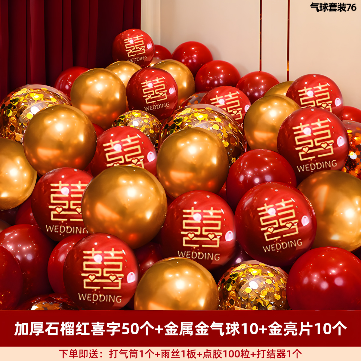 결혼식 풍선 배열 붉은 축제 분위기 원피스 여자의 결혼식 방 침실 장식 장면 결혼식 세트스토어 가기