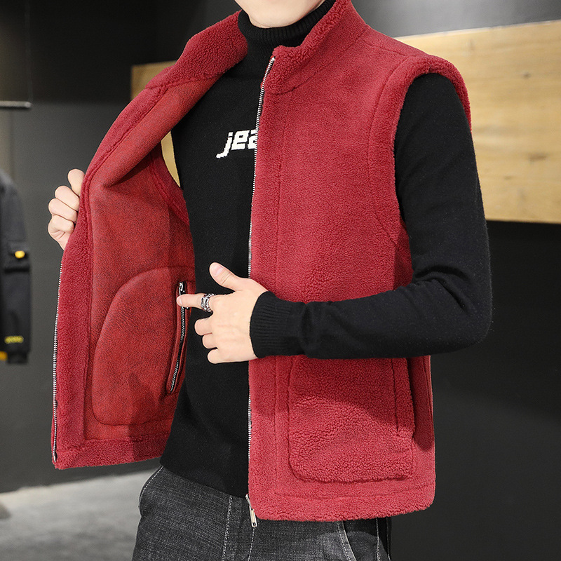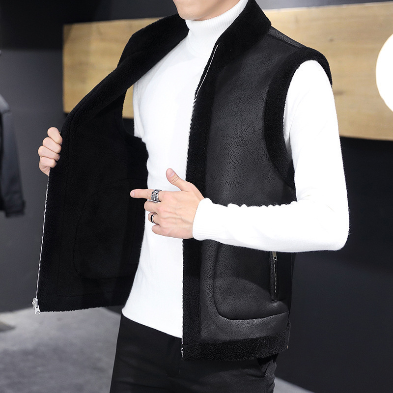 국경 간 대외 무역 2024 남성복 - 가을 겨울 주로 추천되는 모피 일체형 양면 다용도 트렌디 조끼 남성용 과립 벨벳