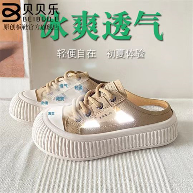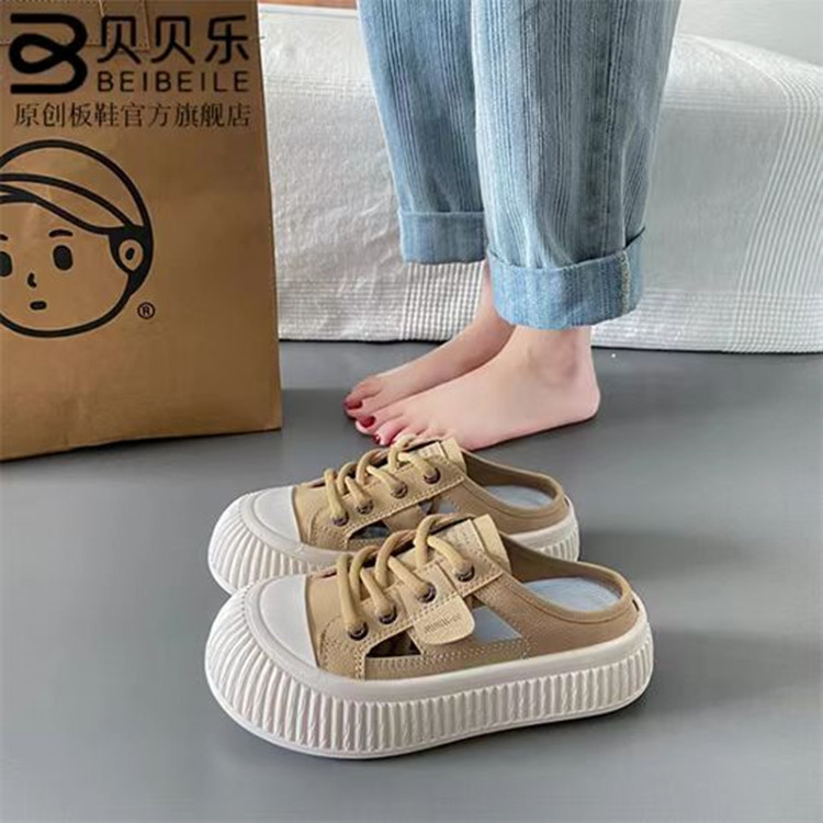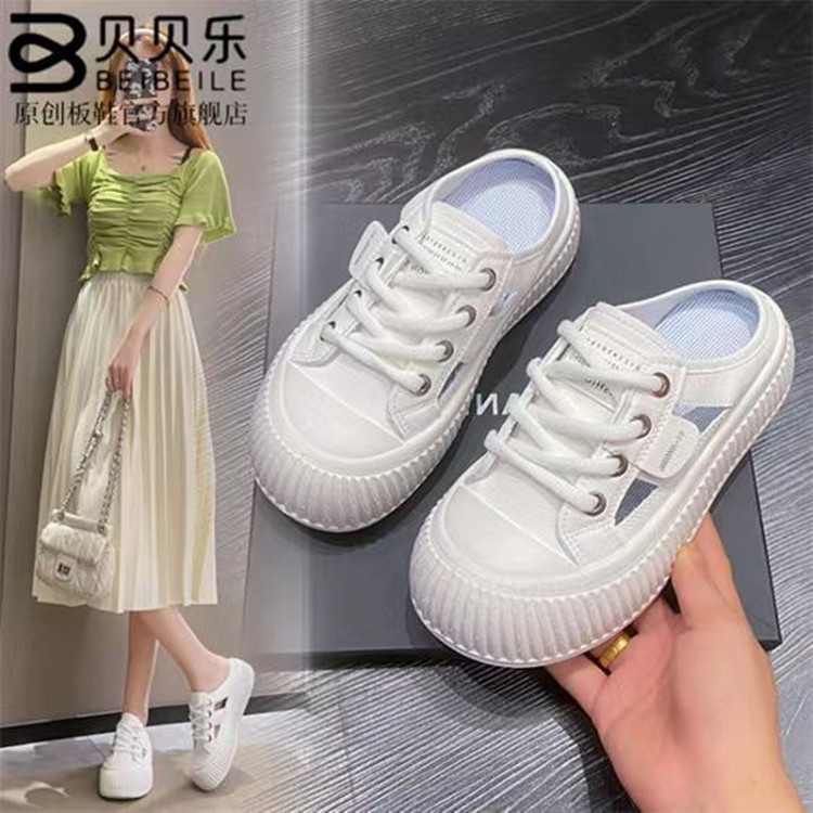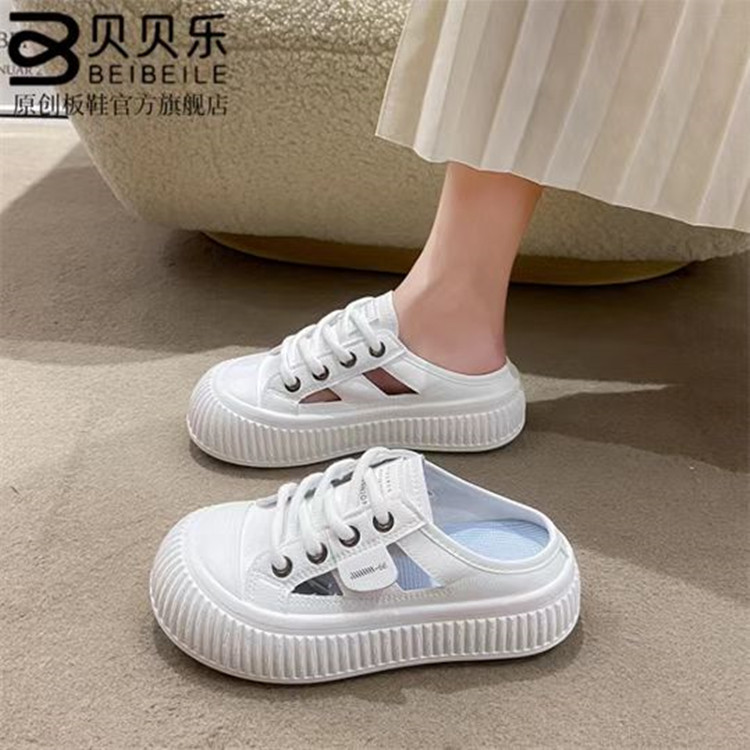 여름 새로운 할로우 발가락 샌들 및 슬리퍼 두꺼운 밑창 한국식 화이트 슈즈 올 매치 소프트 밑창 유행 샌들 (외부 착용 반 슬리퍼)스토어 가기