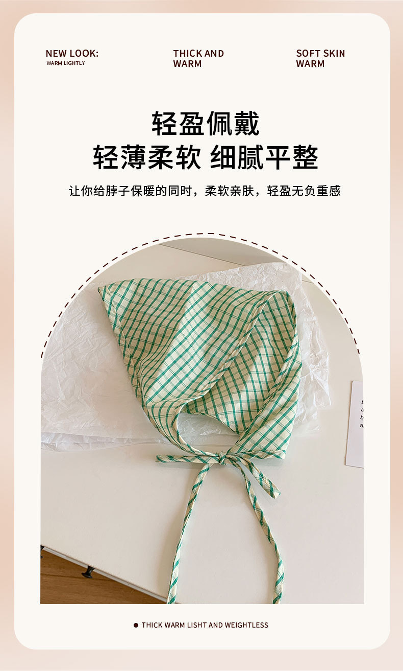 프랑스 블루 격자 무늬 삼각형 스카프 헤어 밴드 여성 여름 신선한 스카프 2024 새로운 휴일 스타일 방귀 커튼스토어 가기