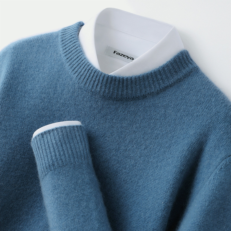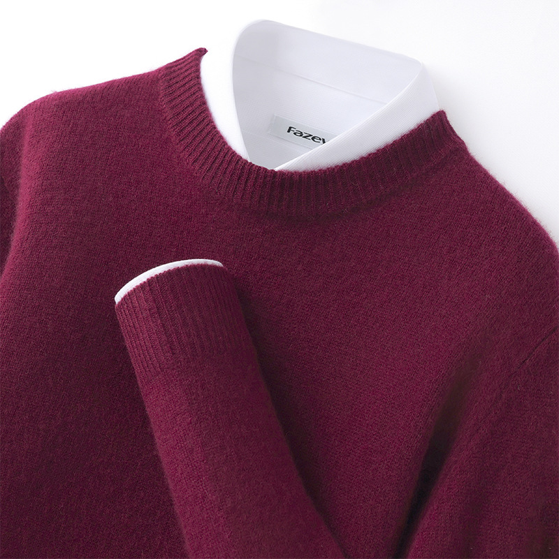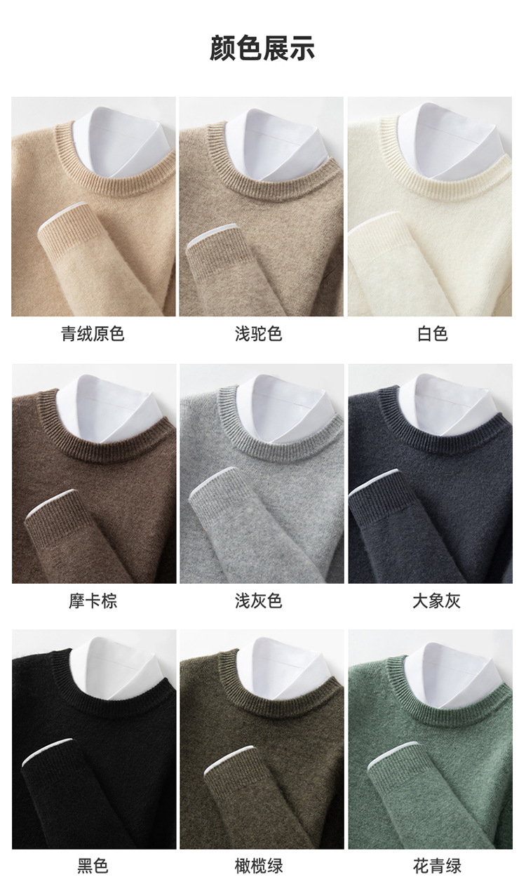 도매 가을, 겨울 새로운 하이 엔드 남성 라운드 넥 솔리드 컬러 스웨터 남성 더블 스트랜드 대외 무역 니트 바닥 셔츠 유행