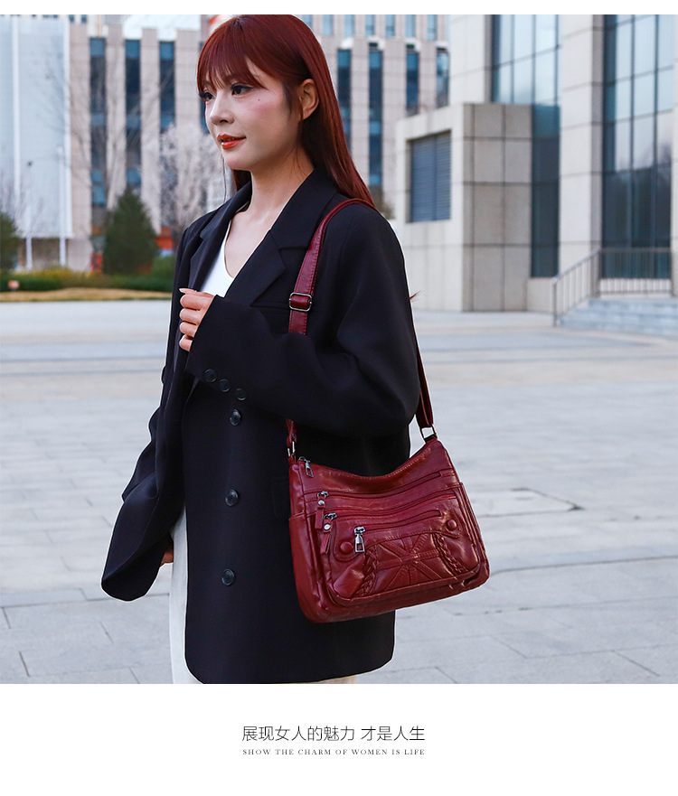 레트로 워싱 가죽 엄마 가방 중년 및 노년층을위한 다층 대용량 가방 2025 새로운 여성 가방 싱글 숄더 크로스 바디 작은 사각형 가방스토어 가기