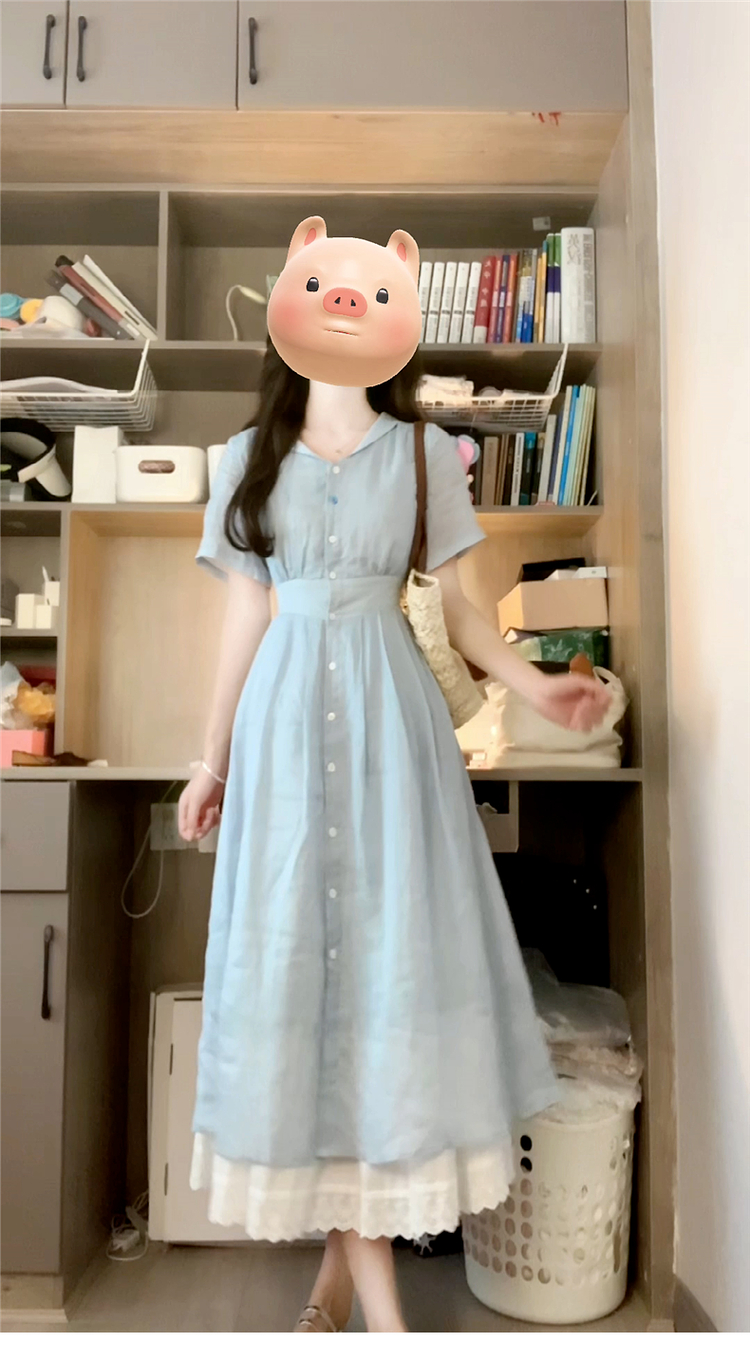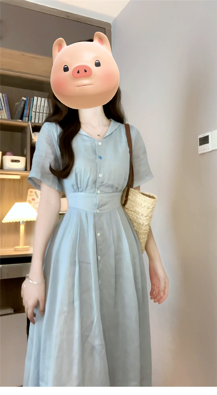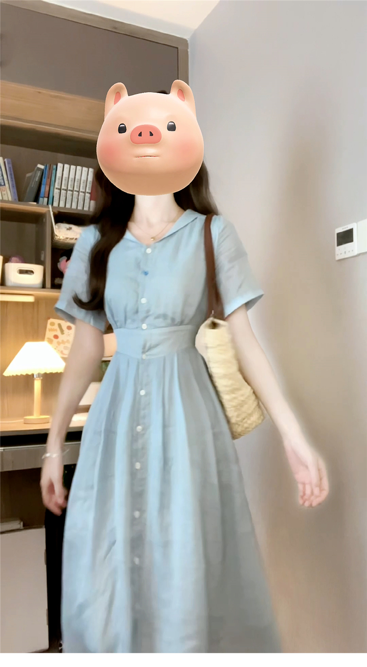 2025 새로운 프랑스 스타일 블루 셔츠 원피스 여름 여성의 우아한 허리 슈퍼 좋은 긴 원피스스토어 가기
