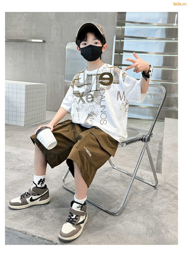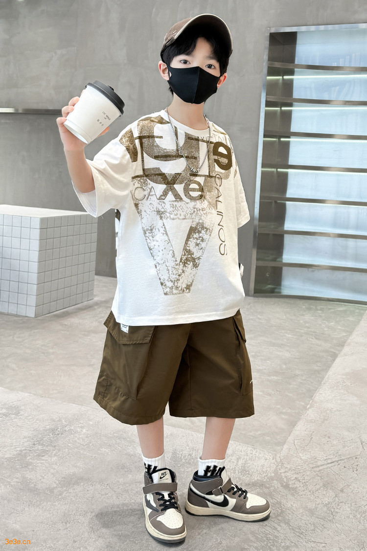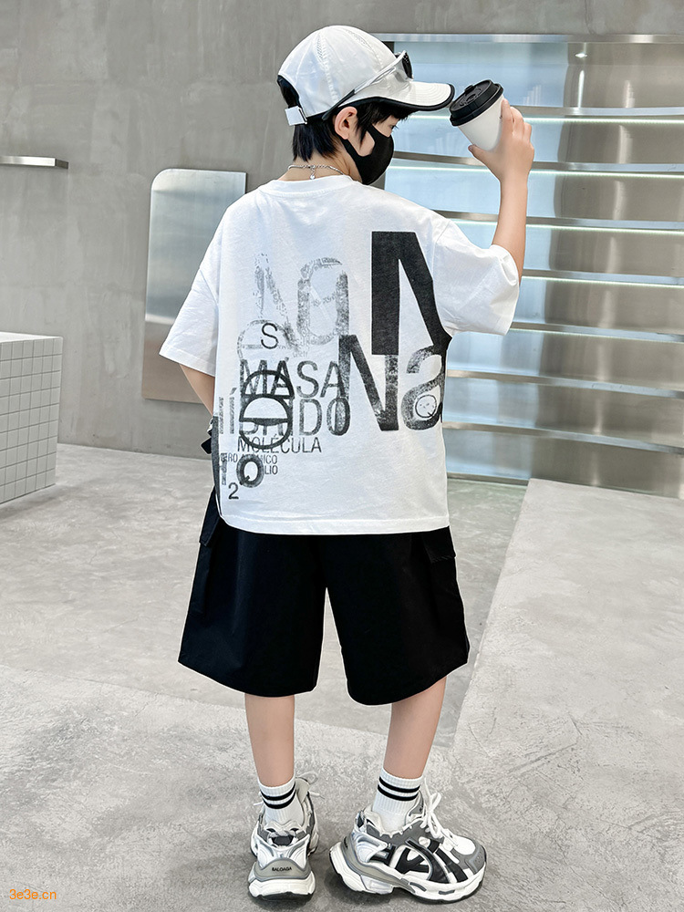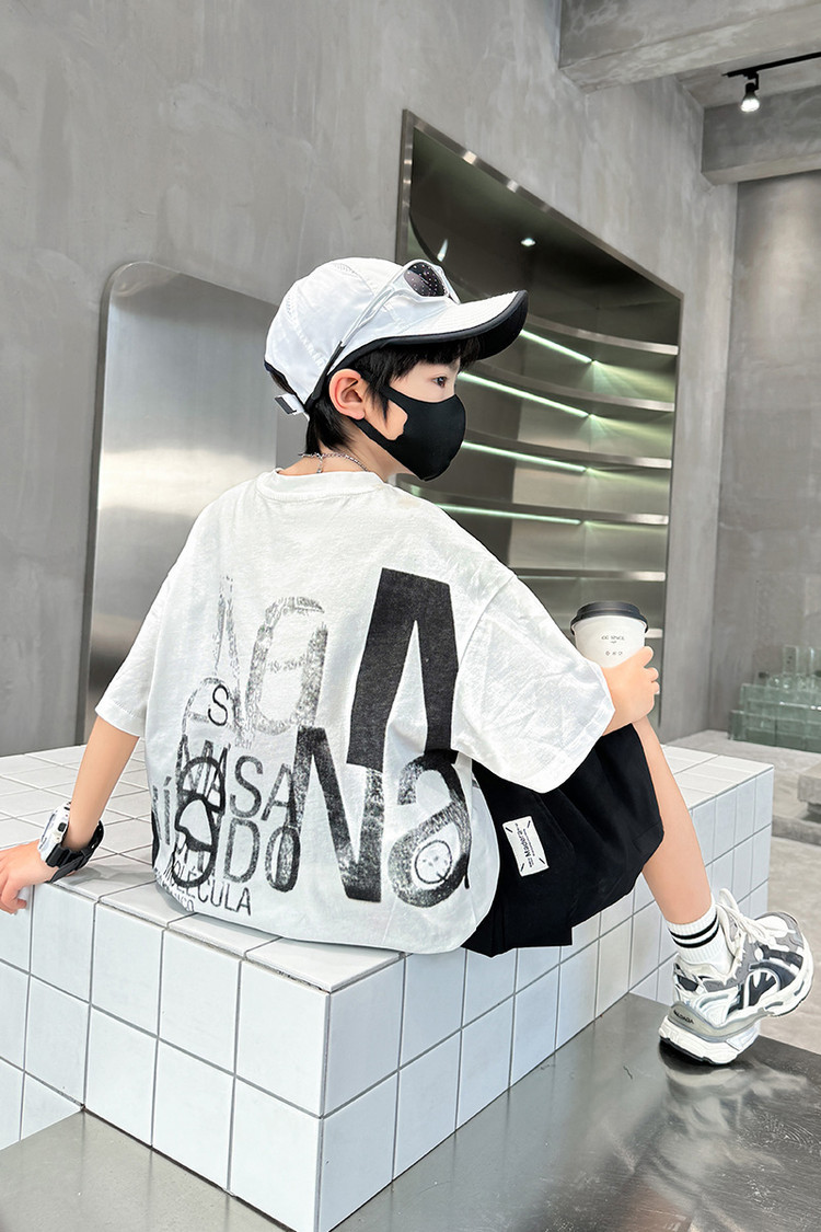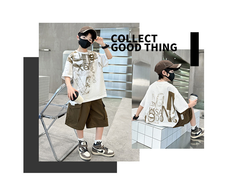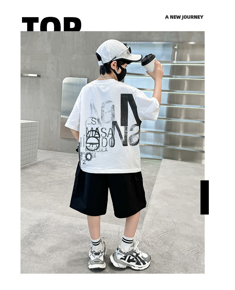남학생 여름 착용 반팔 편지 2025 세트 소년을위한 새로운 중대형 어린이 여름 바지 투피스 국경 세트스토어 가기