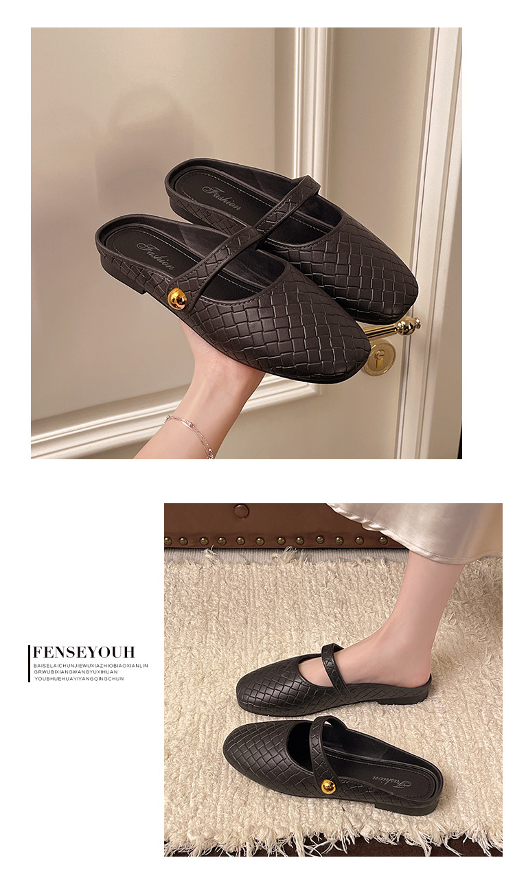 프랑스 스타일 부드러운 Baotou 하프 슬리퍼 여성용 봄과 여름 플랫 경량 금속 버클 우아한 이브닝 브리즈 뮬러 싱글 신발