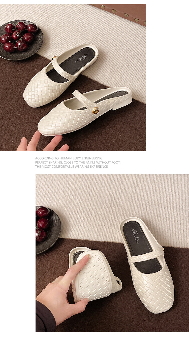 프랑스 스타일 부드러운 Baotou 하프 슬리퍼 여성용 봄과 여름 플랫 경량 금속 버클 우아한 이브닝 브리즈 뮬러 싱글 신발스토어 가기