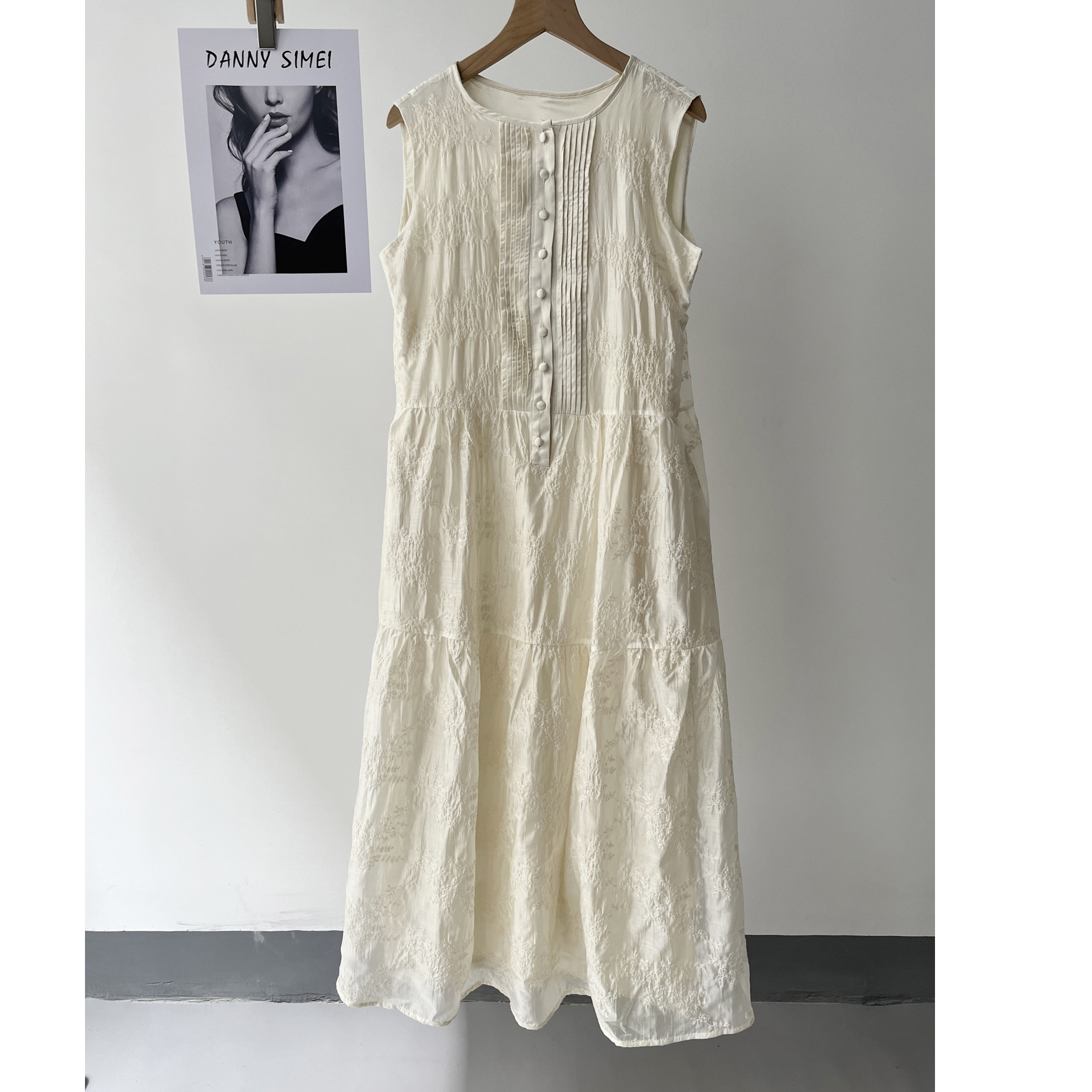 재고 있음 fb 스타일 약간 비침이 있는 정교한 자수 민소매 원피스 여름 휴가 스타일 프렌치 화이트 롱 원피스스토어 가기