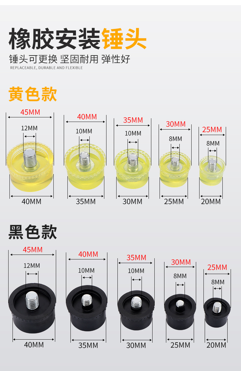 고무 해머 해머 헤드 강관 손잡이 장착 해머 특수 고무 가죽 해머 제거 고무 나일론 해머 교체 예비 부품