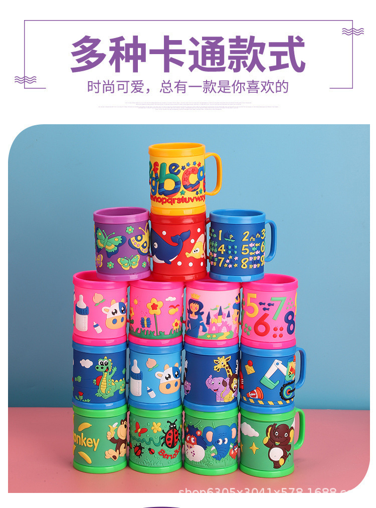 어린이 만화 머그잔 워시 컵 플라스틱 컵 귀여운 두껍고 내구성있는 드롭 방지 창조적 인 마우스 워시 컵 마시는 컵