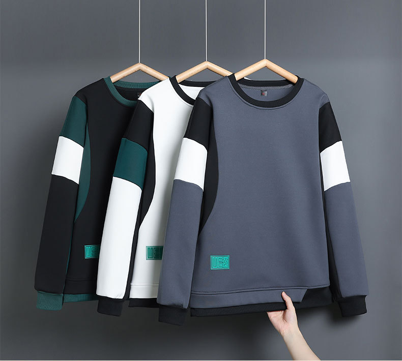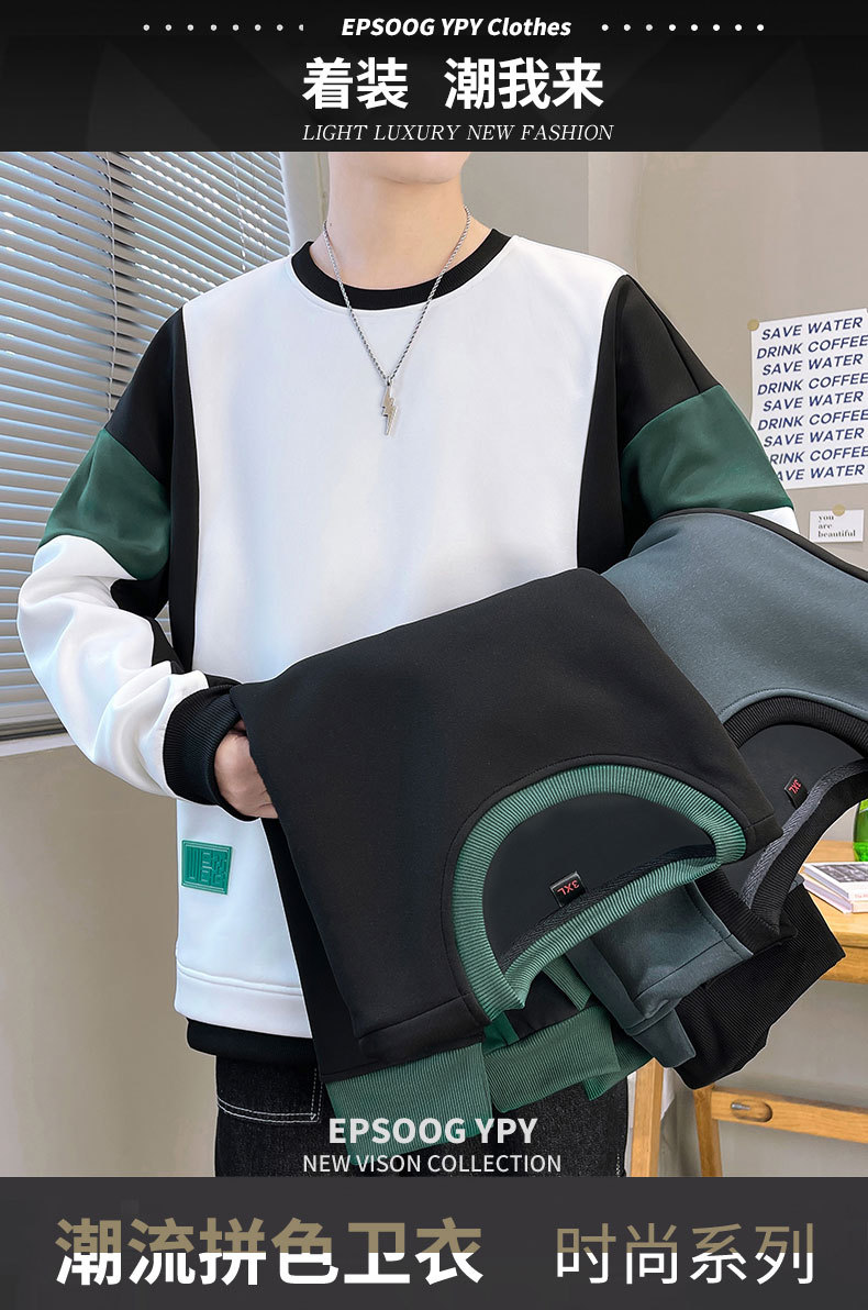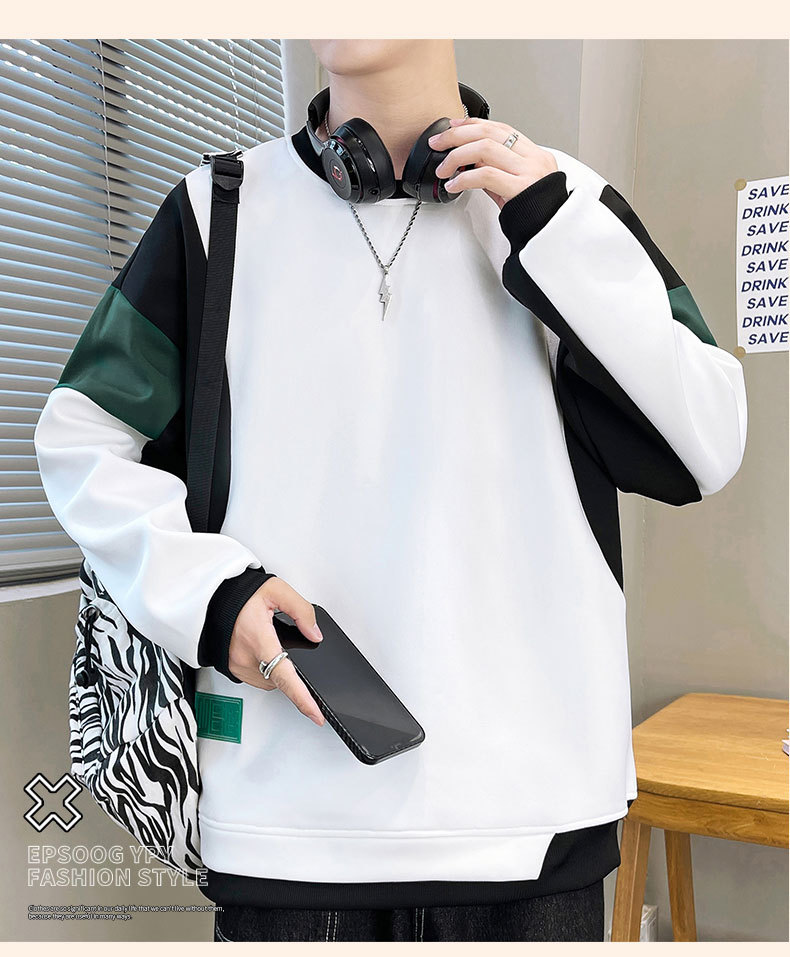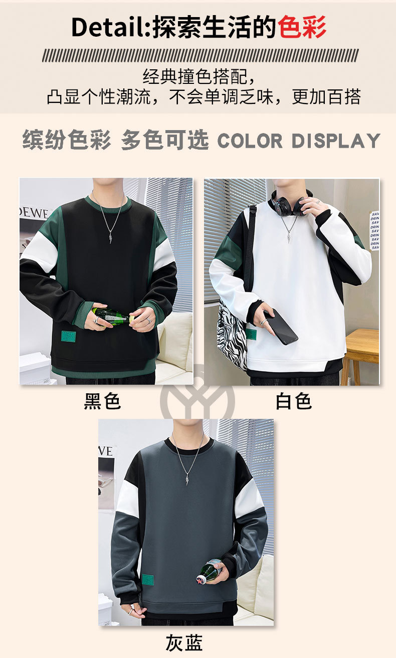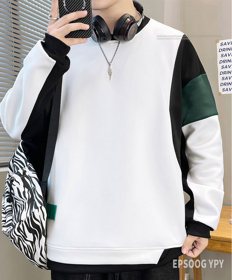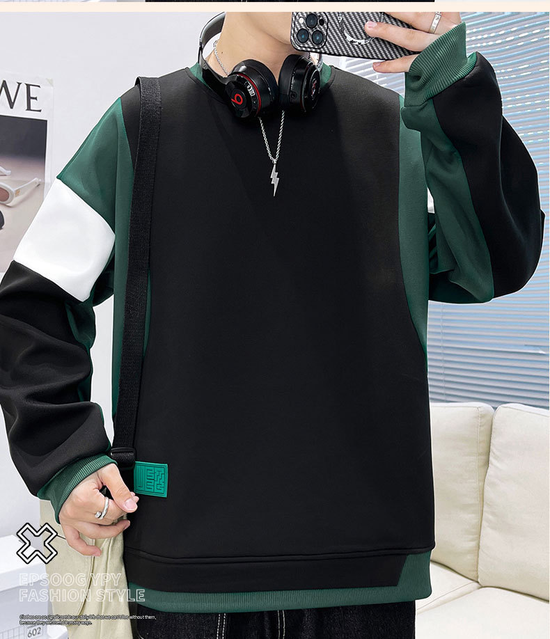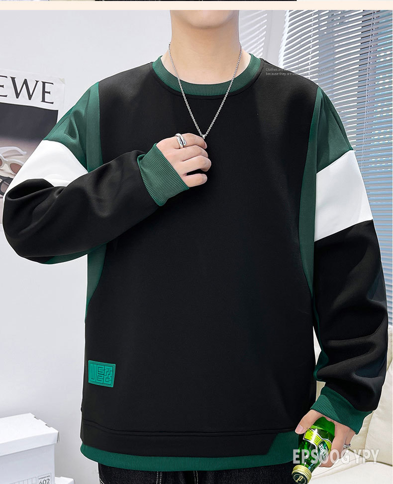 2025 가을 새로운 홍콩 스타일 i 트렌드 스플라이싱 긴팔 라운드 넥 남성 스웨트 셔츠스토어 가기
