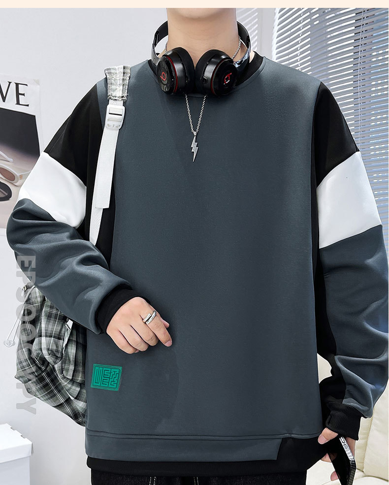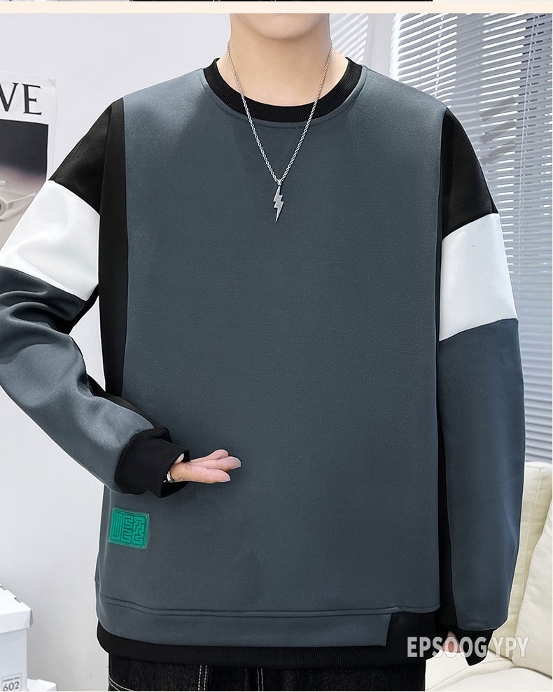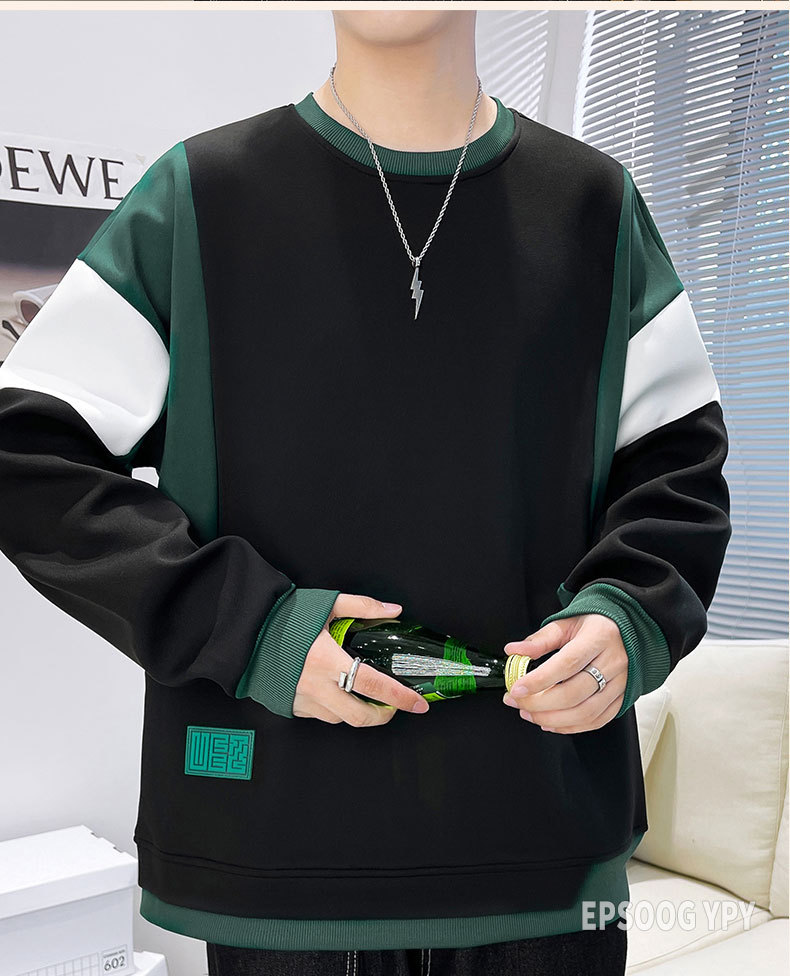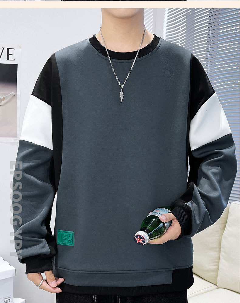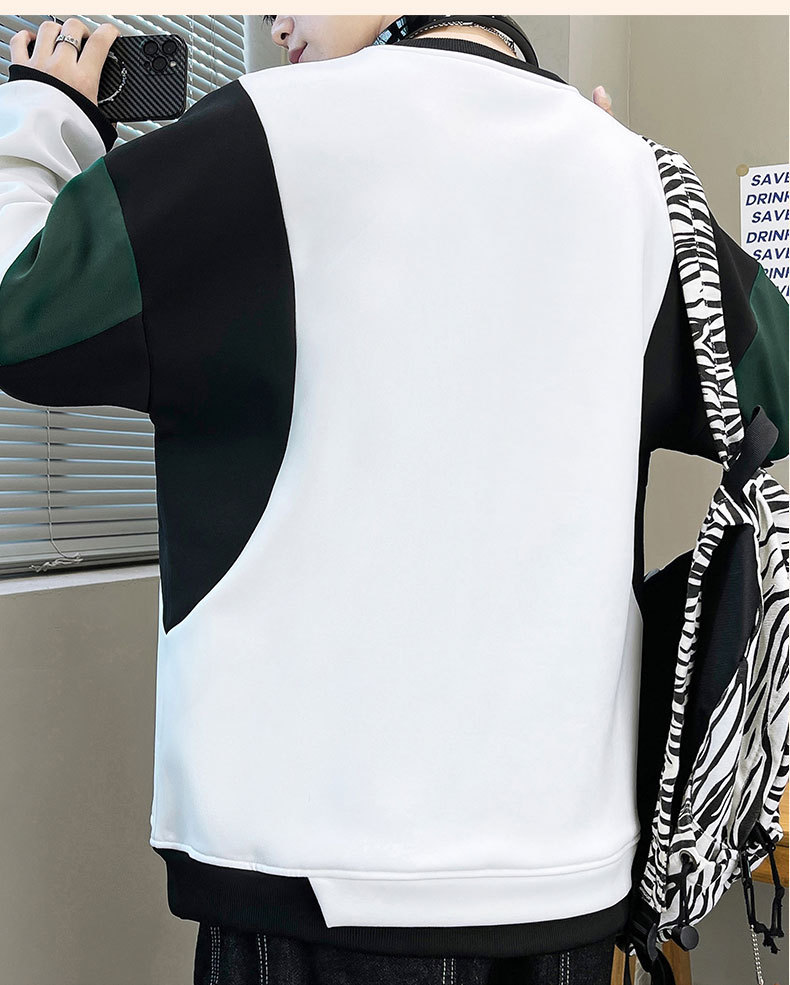 2025 가을 새로운 홍콩 스타일 i 트렌드 스플라이싱 긴팔 라운드 넥 남성 스웨트 셔츠