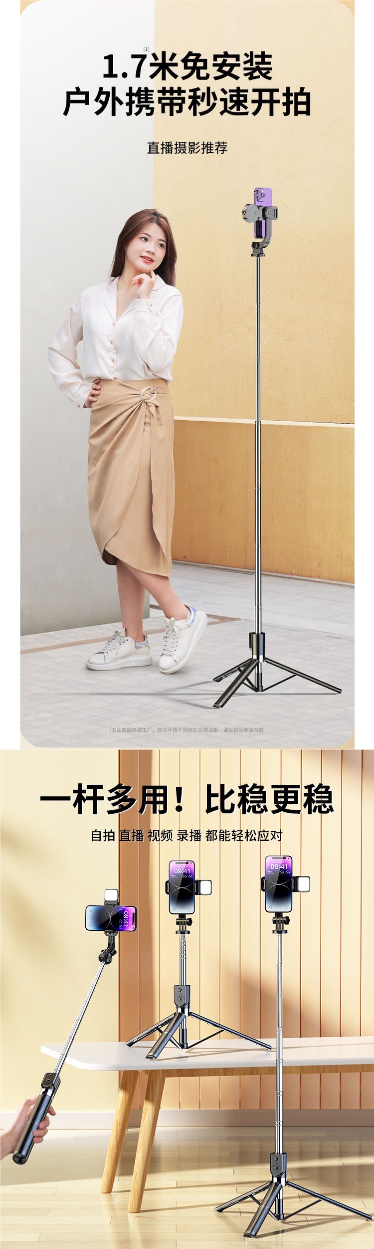 2024 새로운 휴대 전화 셀카 스틱 삼각대 휴대용 착륙 접이식 여행 블루투스 원격 제어 셀카 유물 휴대용