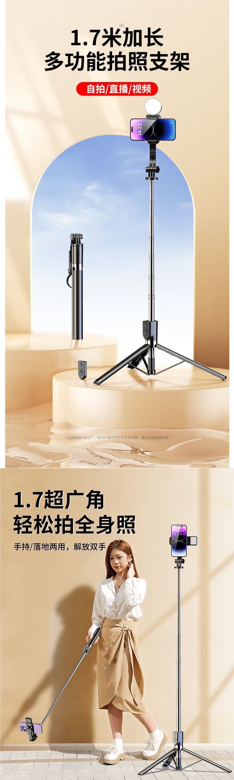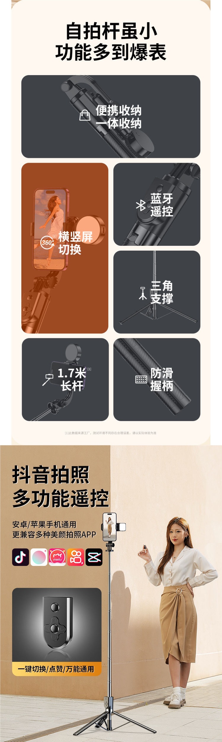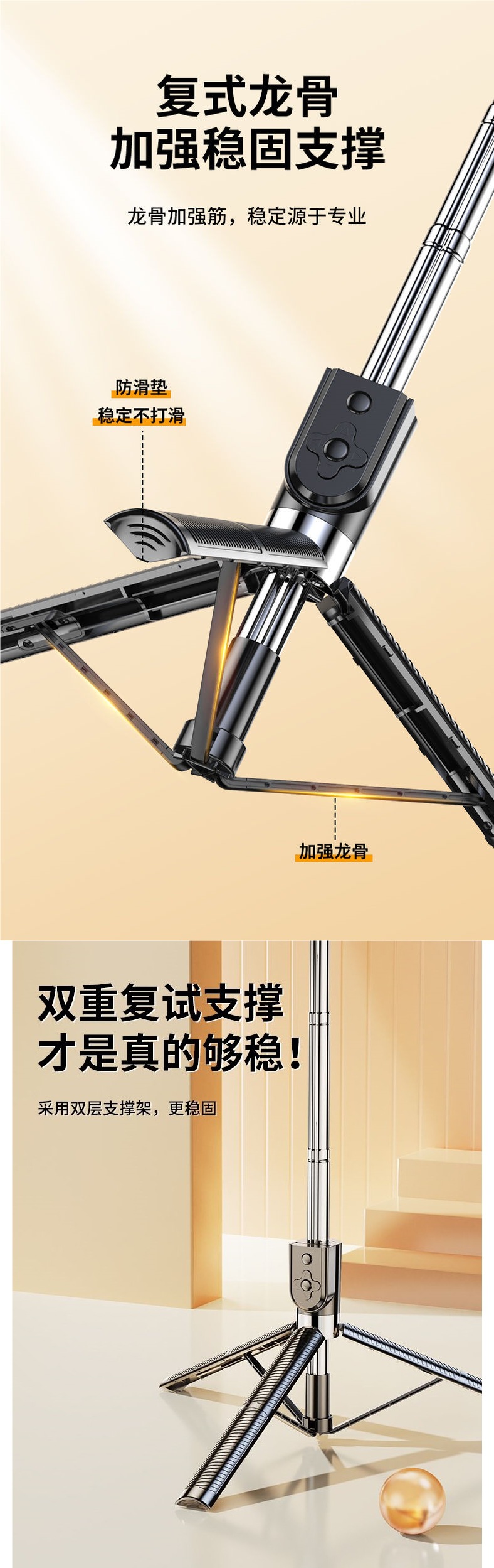 • [다크나이트블랙] 일체형 접이식 여행 필수품 - [2019 플래그십 익스텐션] 블루투스 리모컨 + 플로어 스탠딩 삼각대