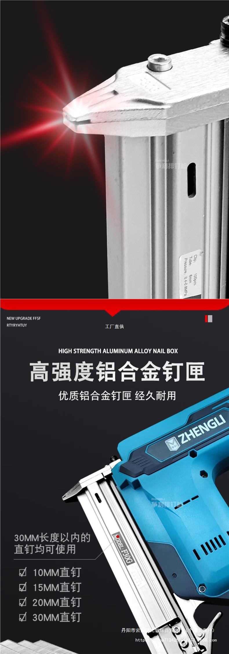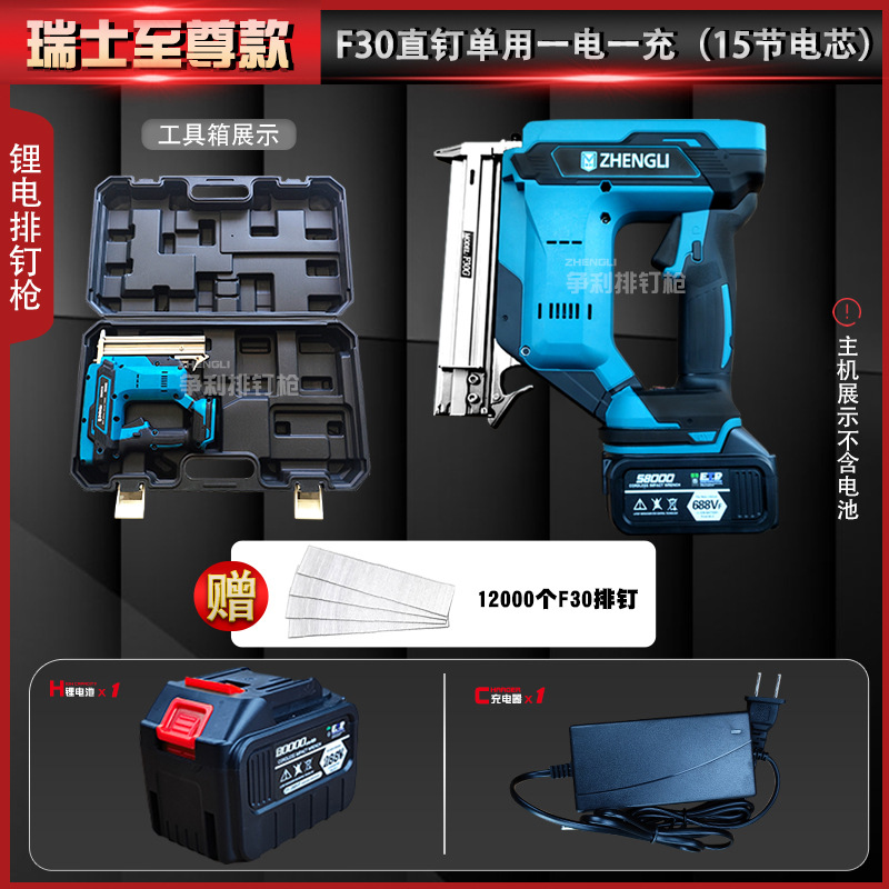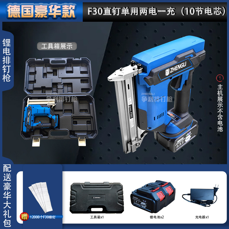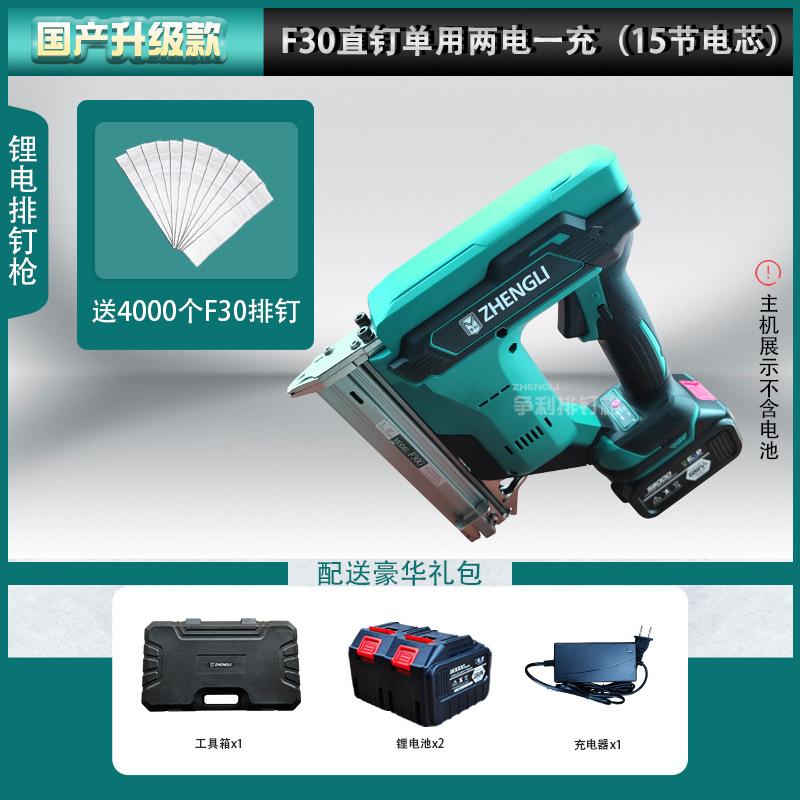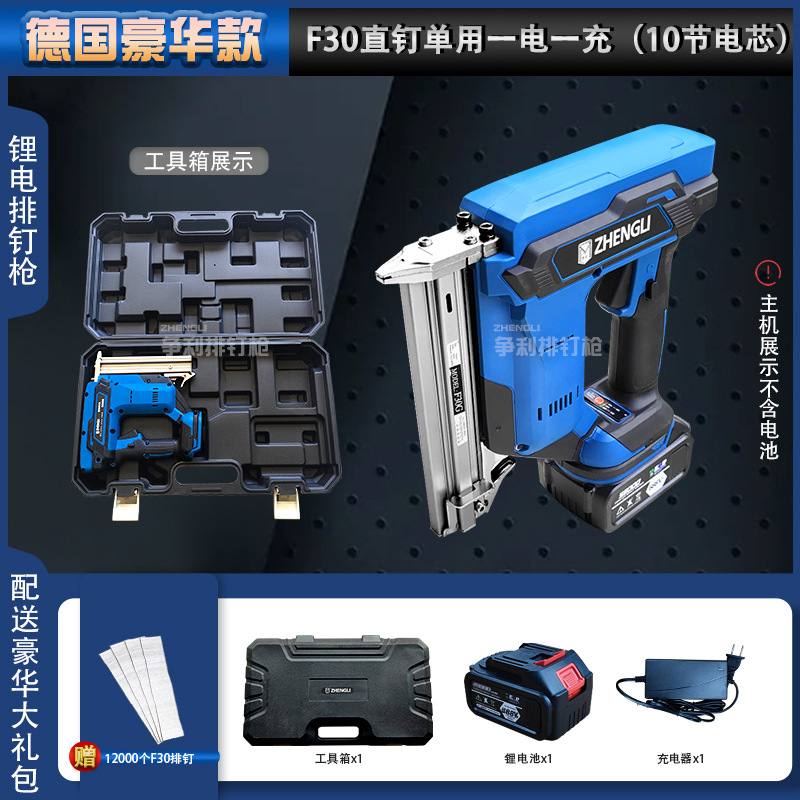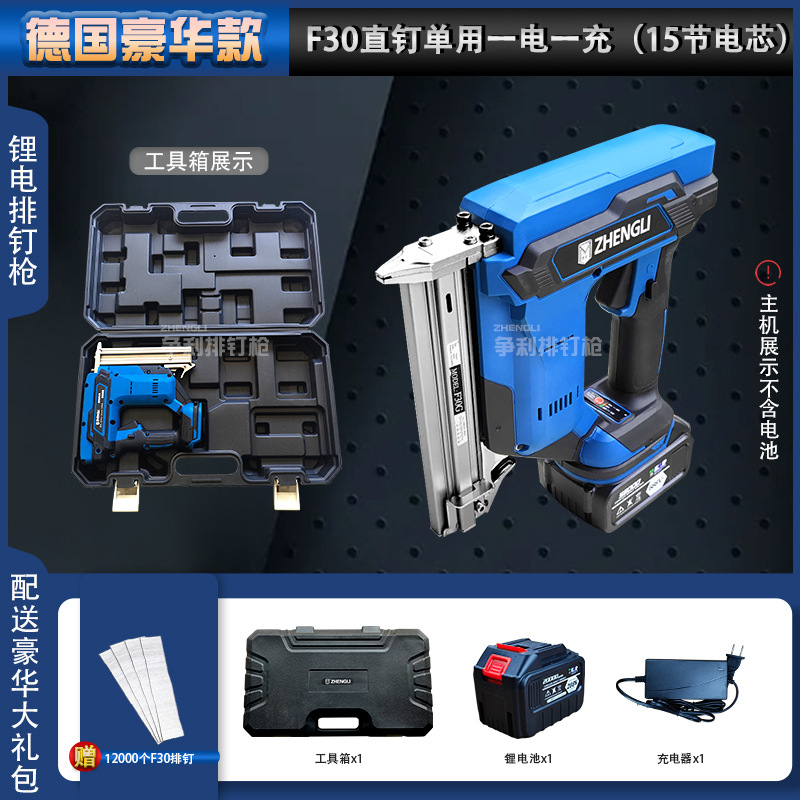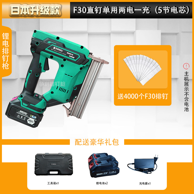 • 독일의 고급 모델 F30 직선 못은 배터리 1개와 충전 1개(배터리 15개)만 사용합니다. + 무료 F30 못 12,000개