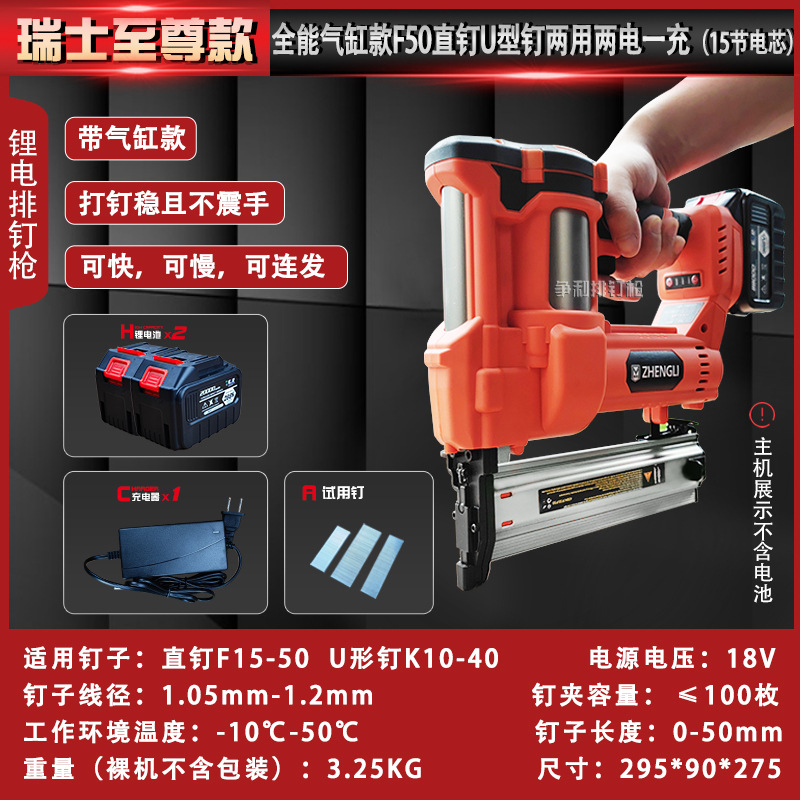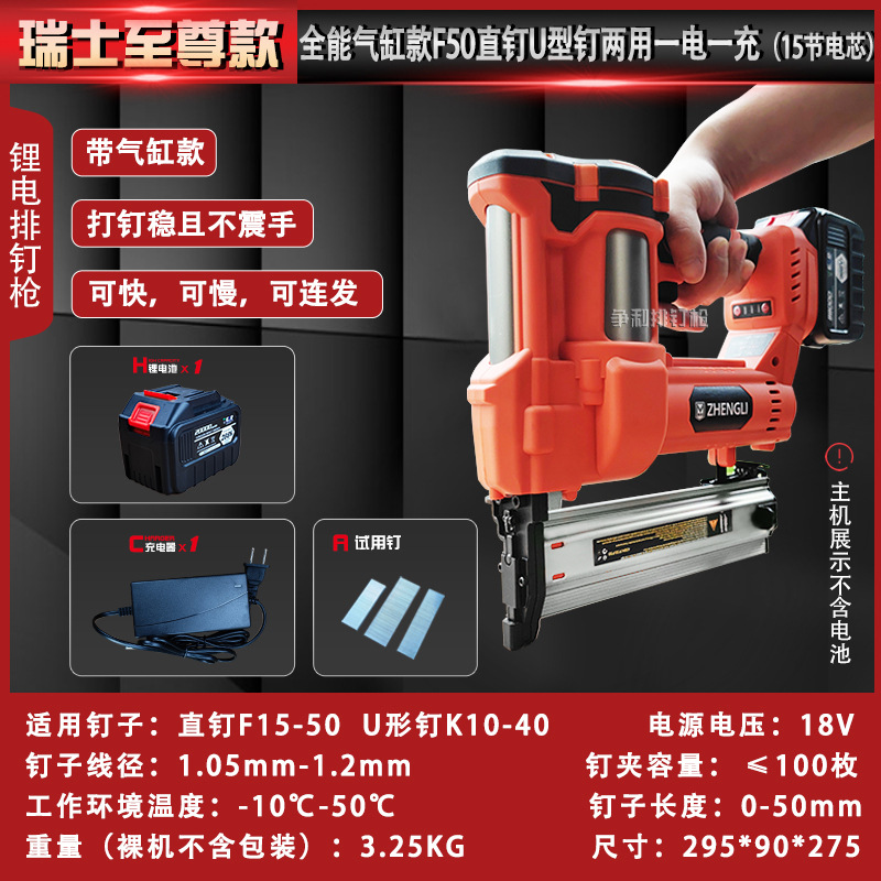 • 스위스 실린더 모델 F50 직선 못 U자형 못 이중 목적 배터리 1개 및 충전 1개(배터리 15개)