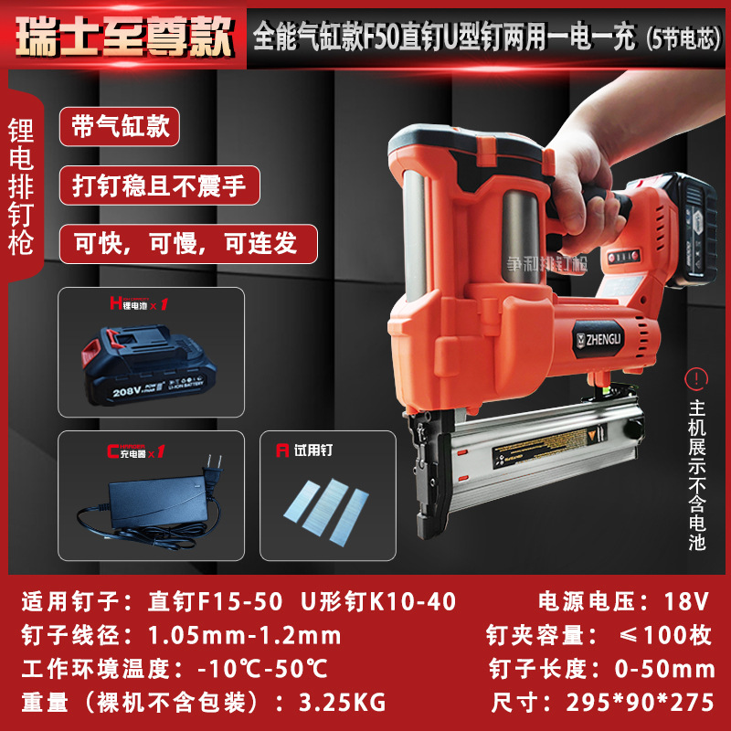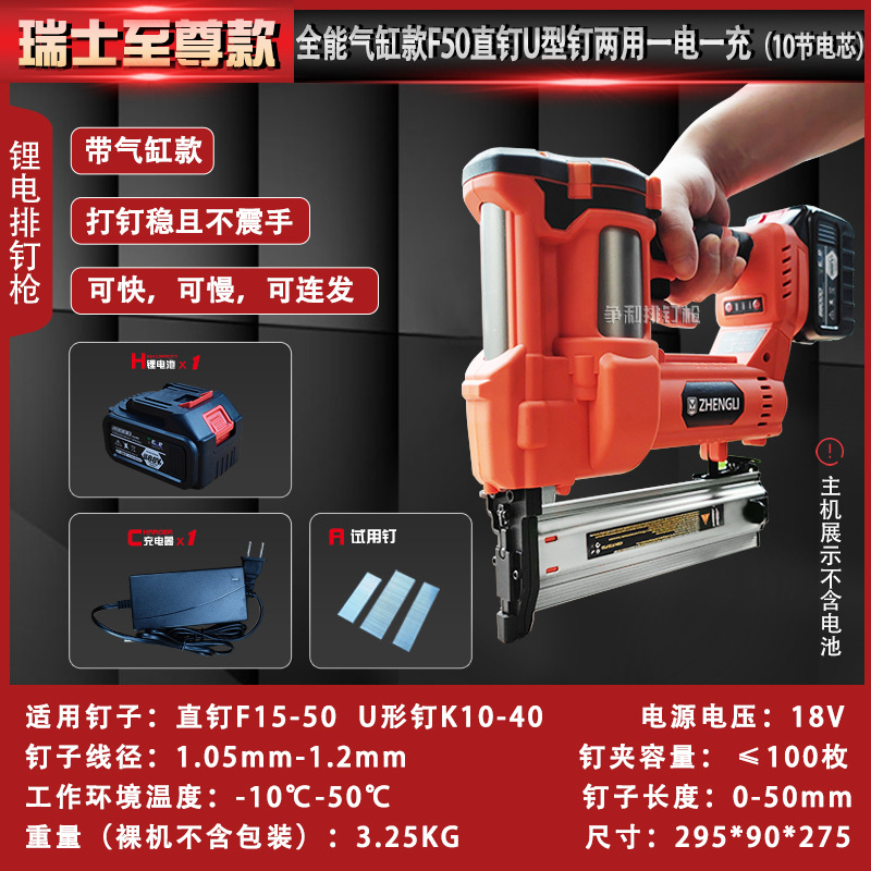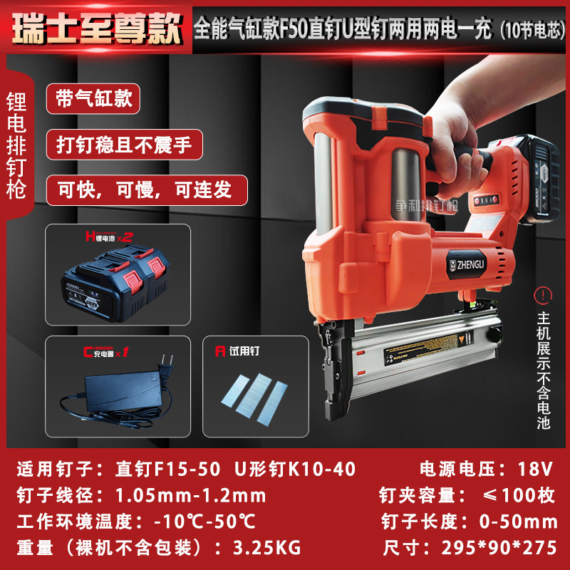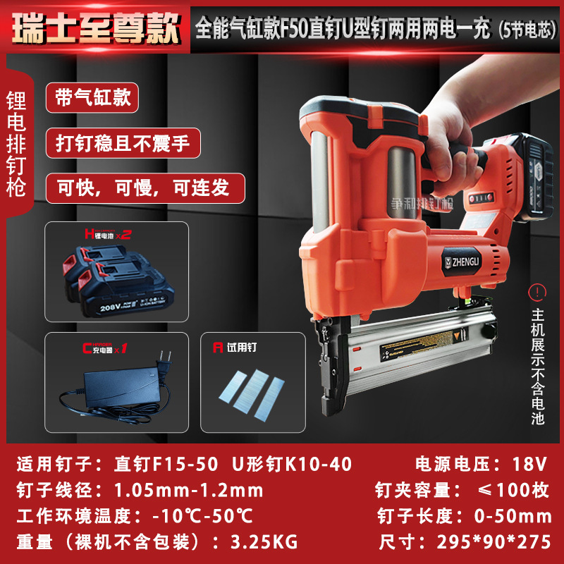 • 스위스 실린더 모델 F50 직선 못 U자형 못 이중 목적 배터리 1개 및 충전 1개(배터리 10개)