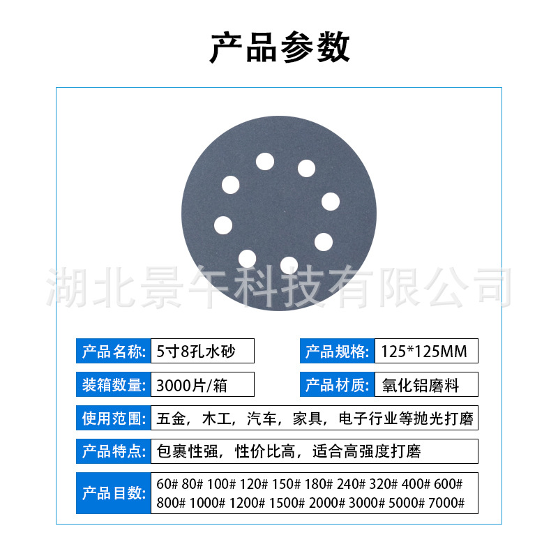 도매 국경 폭발 5 인치 8 홀 실리콘 카바이드 블랙 샌드 125mm 건조 및 습식 이중 목적 연마 사포스토어 가기