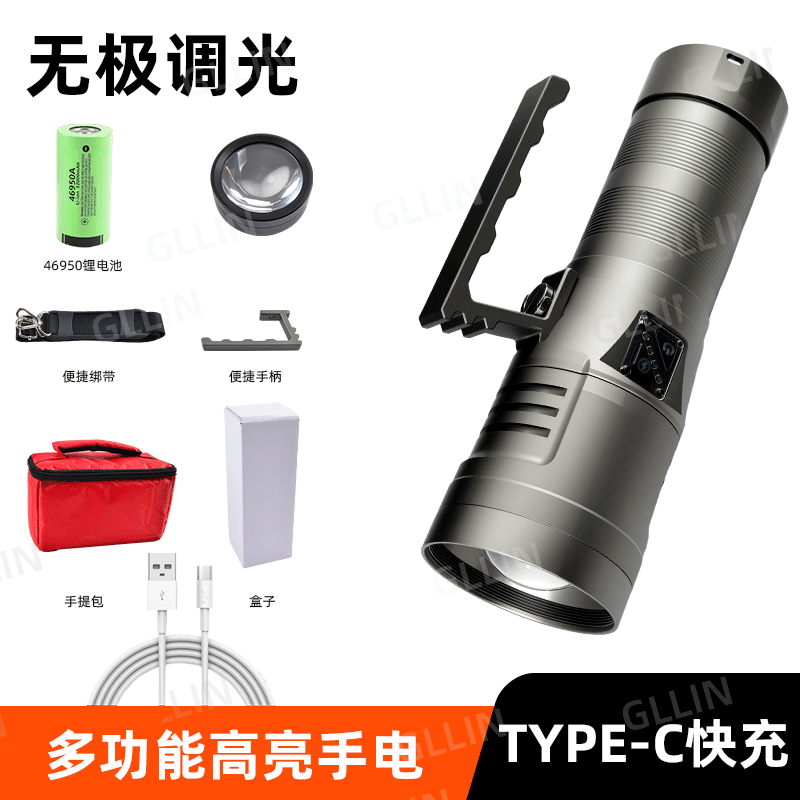 국경 간 강한 빛 높은 전력 손전등 알루미늄 합금 스포트라이트 튜브 가정용 야외 원격 킬로미터 빔 서치 라이트