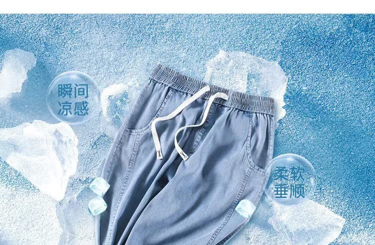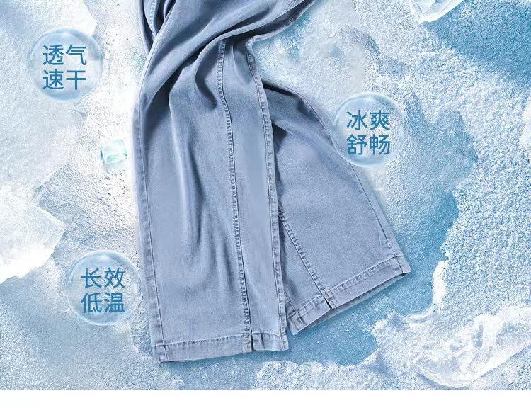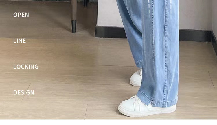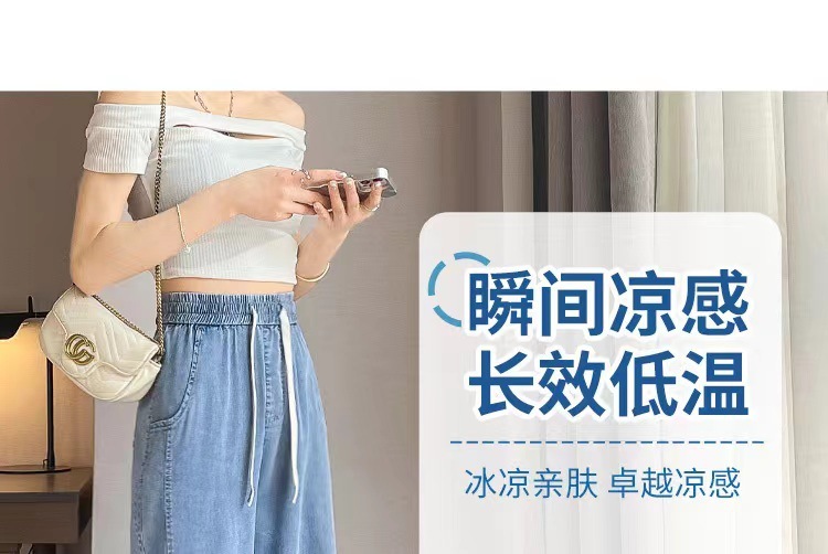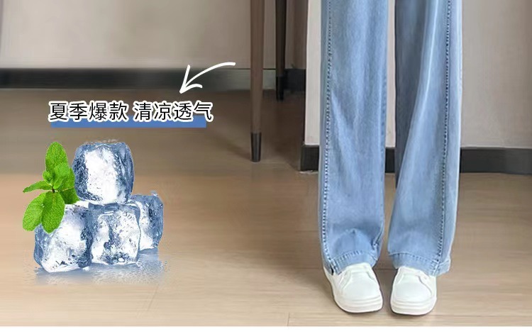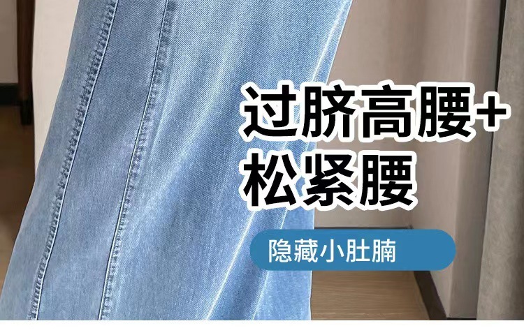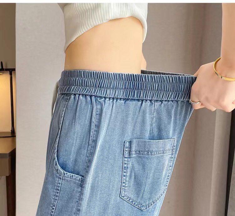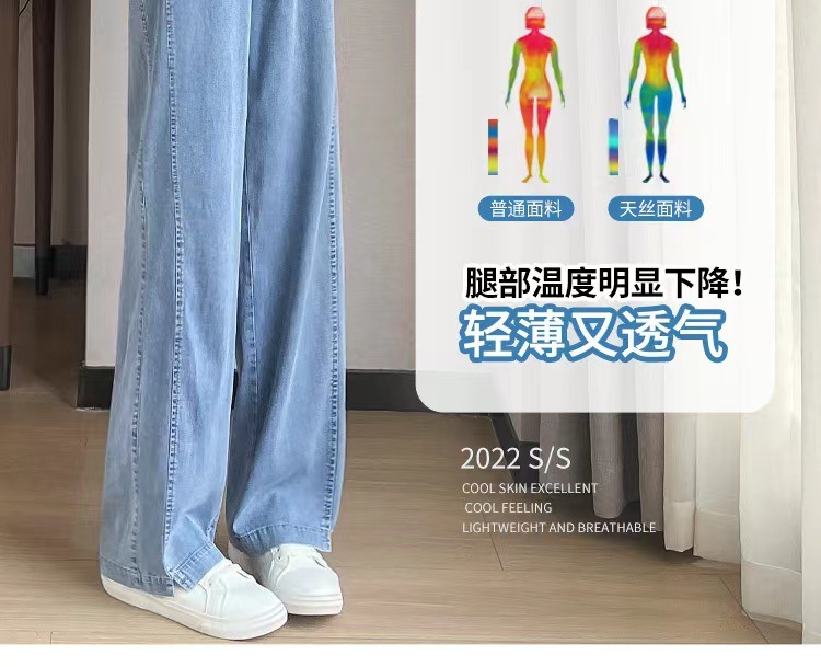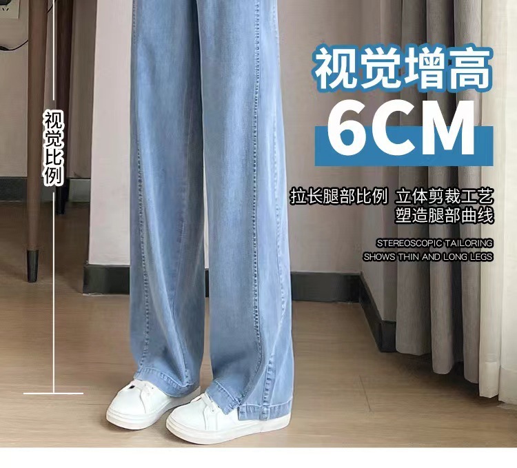 여름 2025 얇은 팔꿈치 허리 텐셀 청바지 여성용 높은 허리 디핑 슬리밍 라이트 컬러 드로우 스트링 슈퍼 소프트 와이드 다리 바지스토어 가기