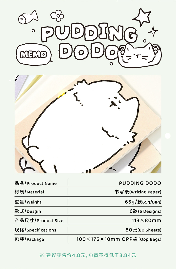 PUDDING DODO 시리즈 귀여운 만화 눈물을 흘리는 메모 메모 패드 참고 사항스토어 가기