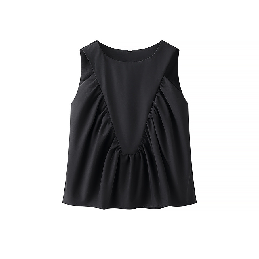 UC & ZA 국경 아마존 여성복 유럽과 미국 스타일 크루 넥 단색 주름 장식 간단한 조커 민소매 조끼