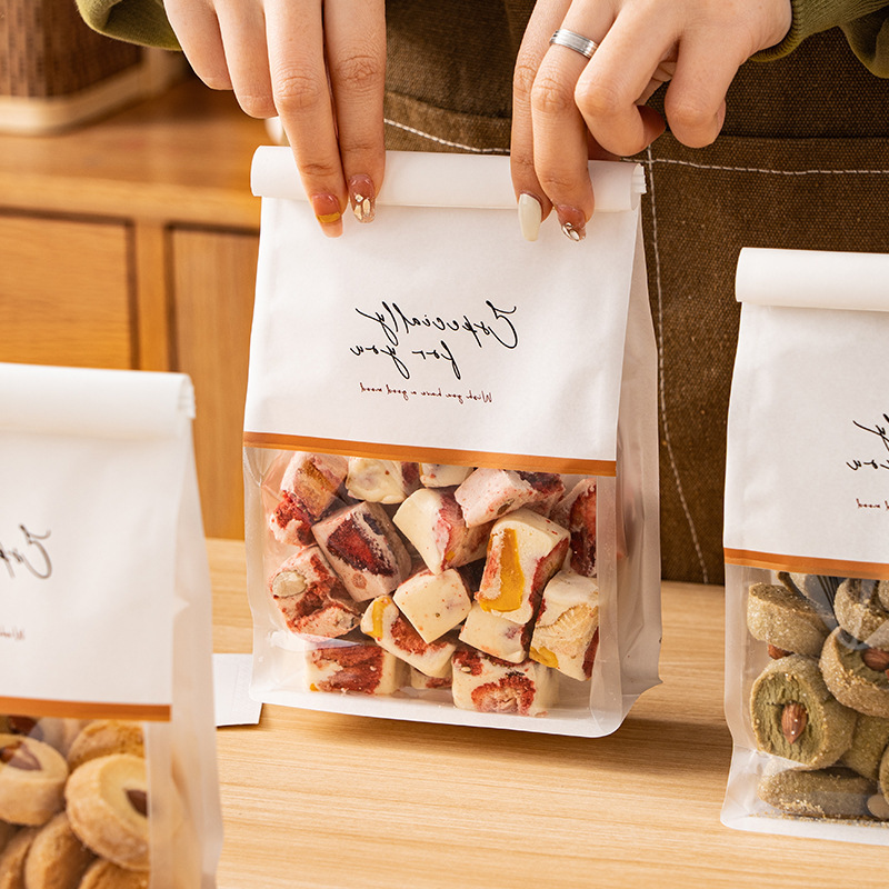 베이킹 백 스낵 토피 누가 식품 자체 밀봉 디저트 쿠키 포장 백 쿠키 눈송이 캔디 상자스토어 가기