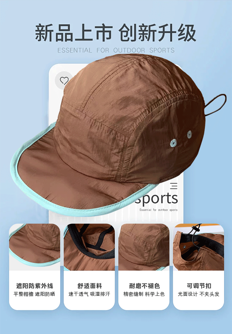 태양 보호 야외 속건 모자, 가볍고 통기성이 뛰어난 틈새 트렌디 브랜드 피크 캡, 방수 캠핑 하이킹 등산 자외선 차단 모자스토어 가기