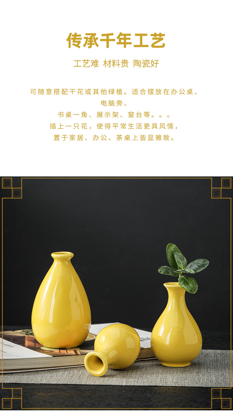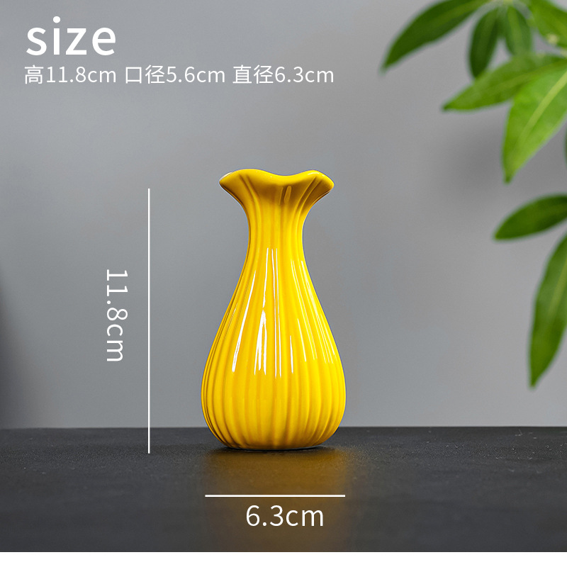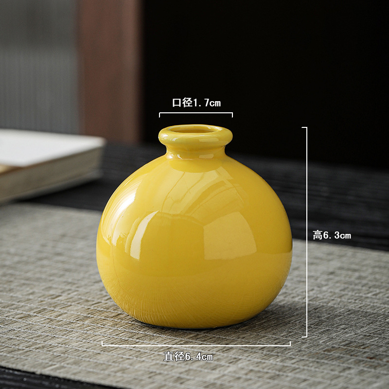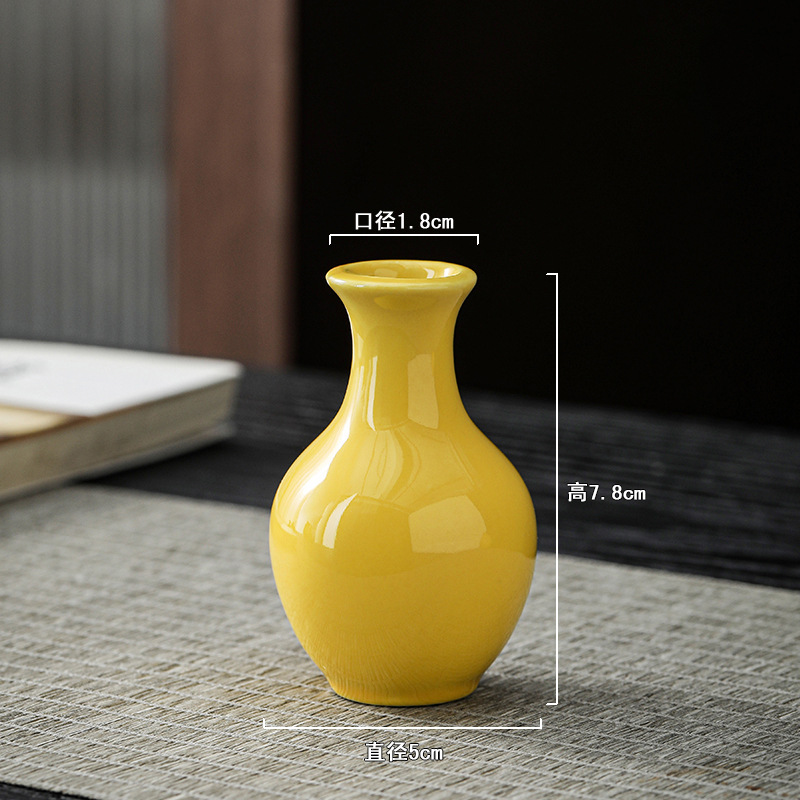 노란색 세라믹 작은 꽃병 축제 집들이 새해 바탕 화면 작은 꽃병 차 테이블 다도 수경 작은 꽃 장식품