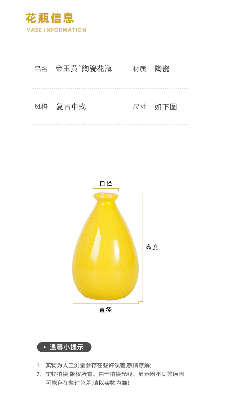 노란색 세라믹 작은 꽃병 축제 집들이 새해 바탕 화면 작은 꽃병 차 테이블 다도 수경 작은 꽃 장식품스토어 가기