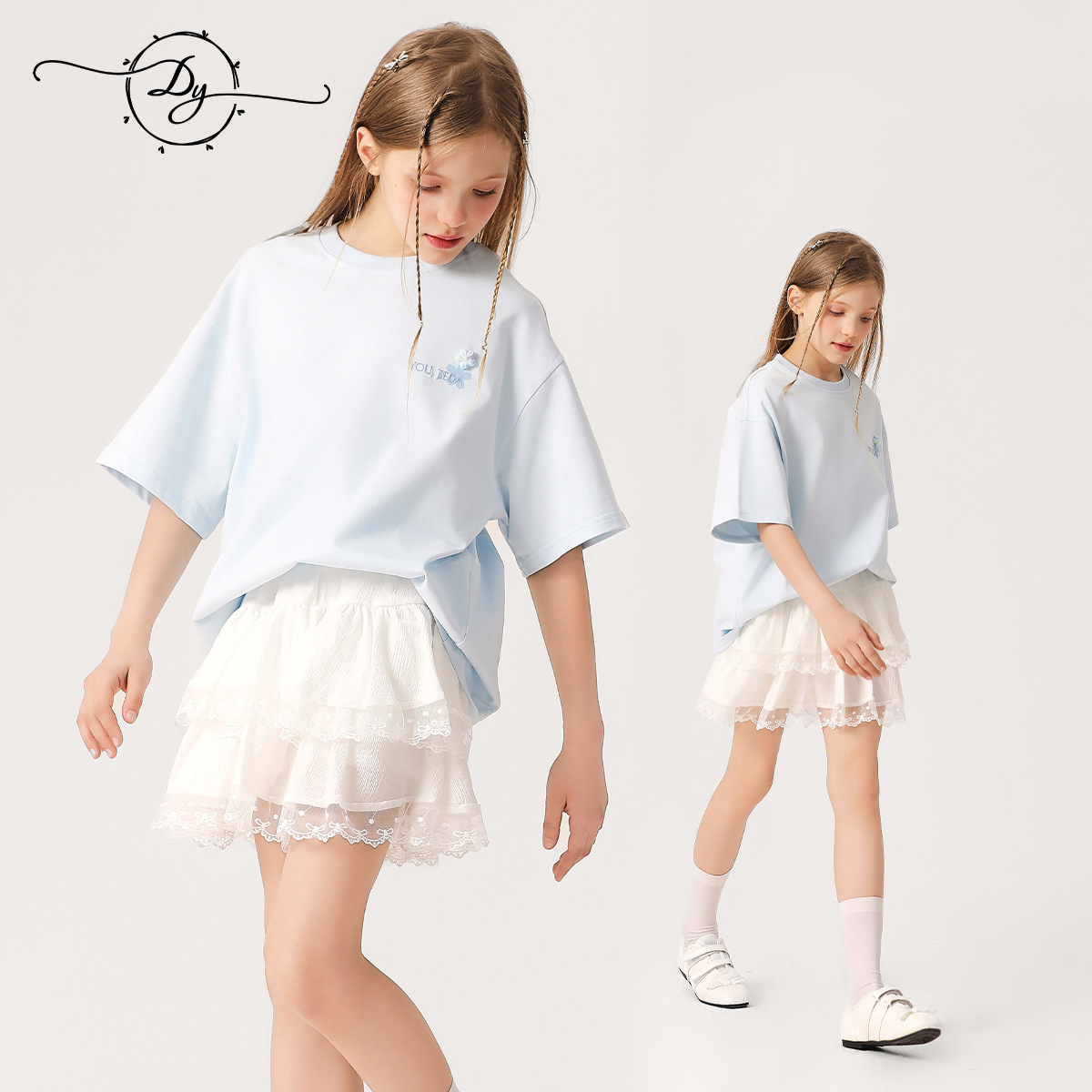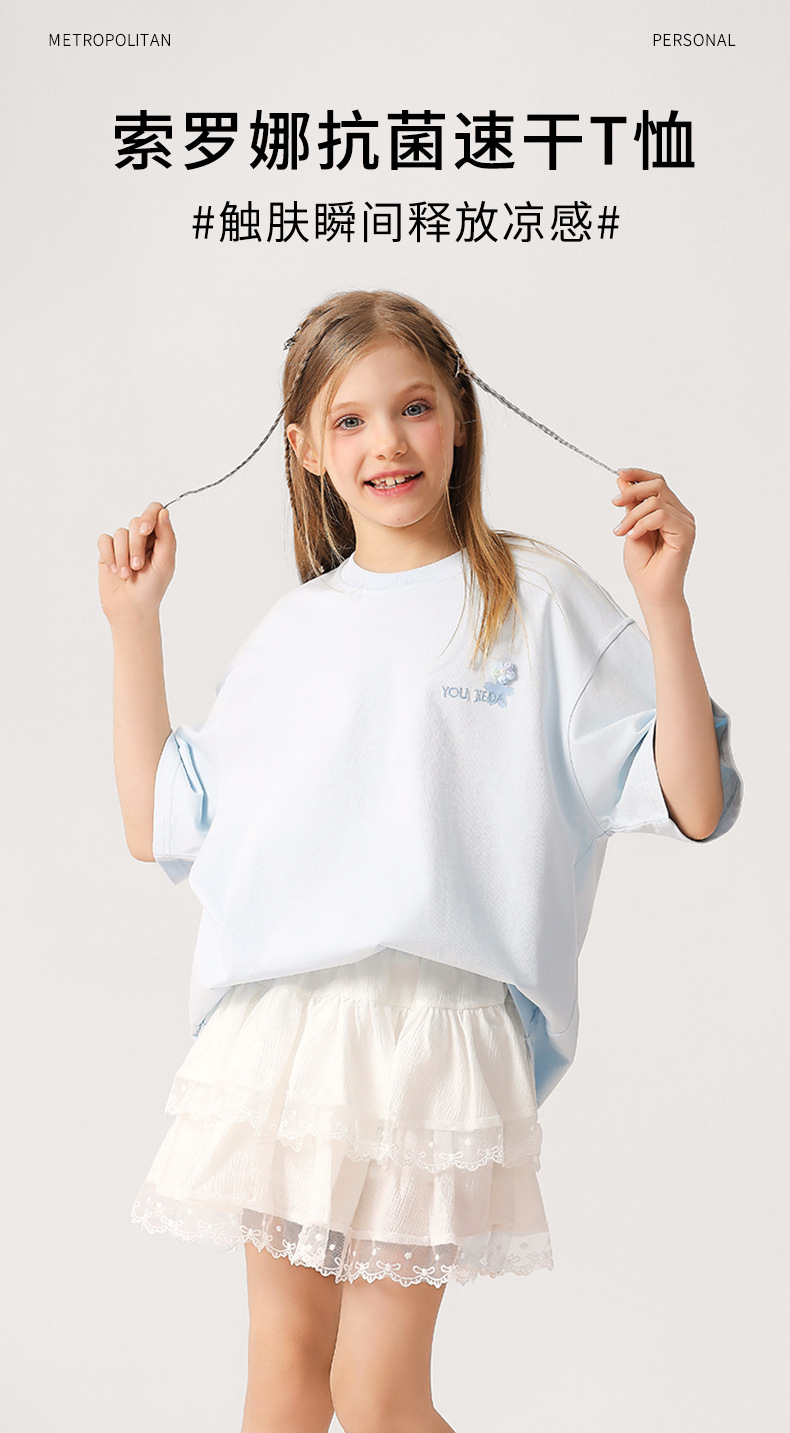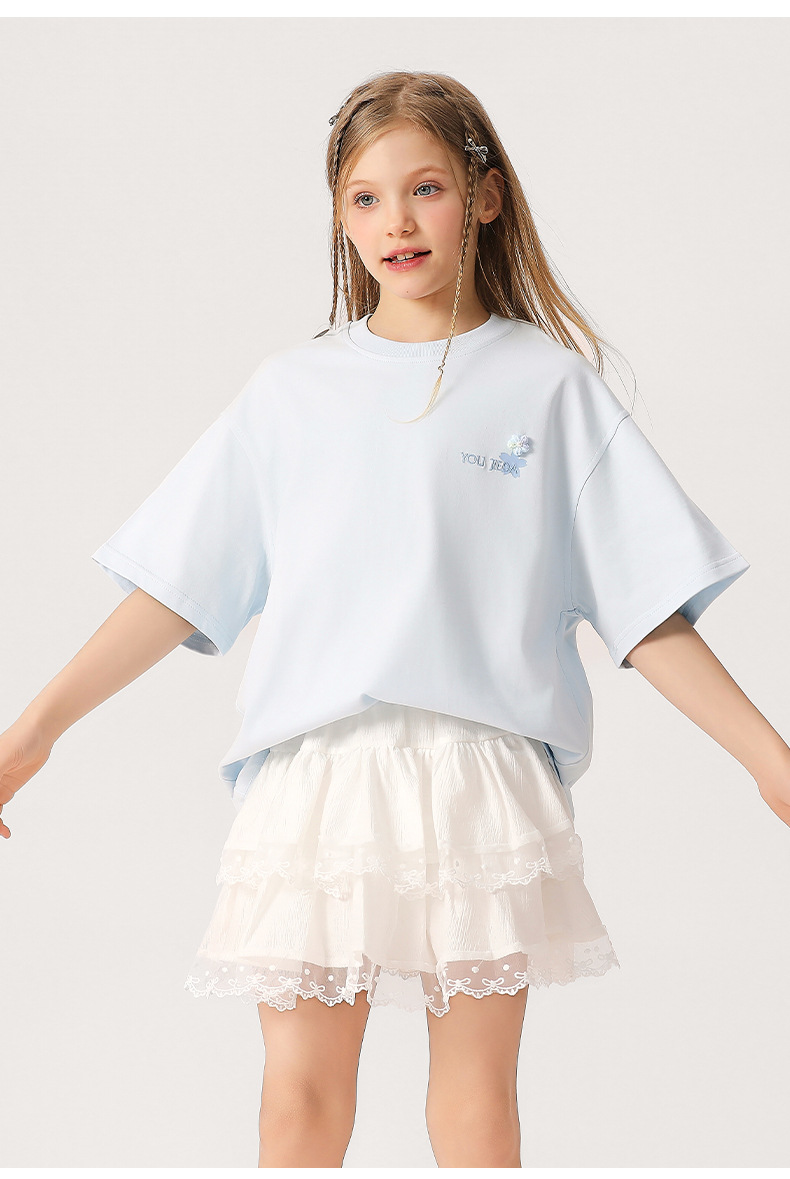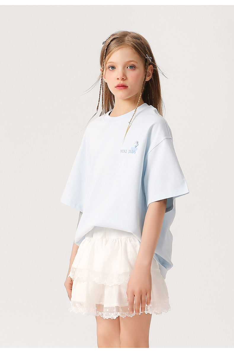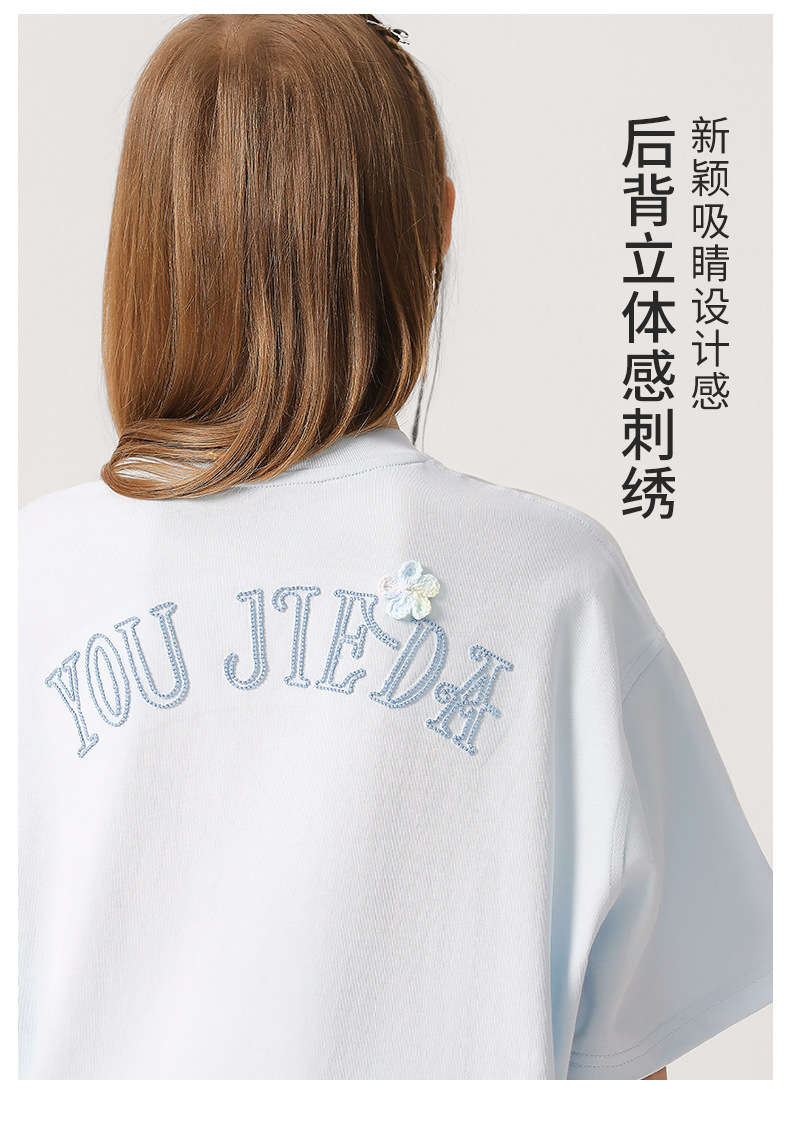 소녀 3 차원 편지 수 놓은 티셔츠 2025 새로운 스타일 중대형 어린이 서양식 여름 반팔 통기성 학생 얇은 탑스토어 가기