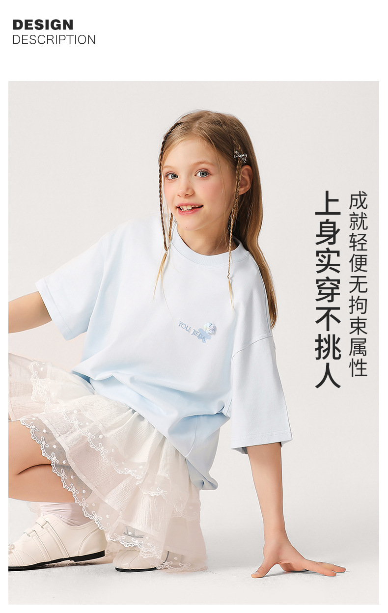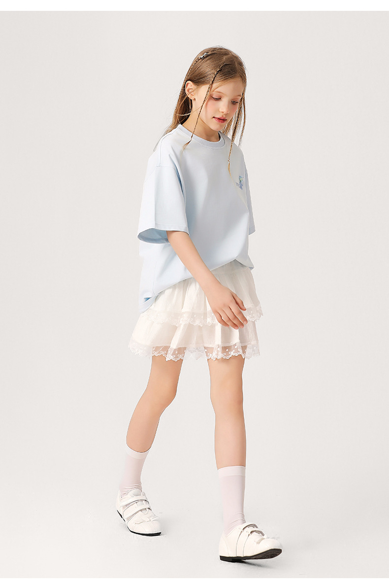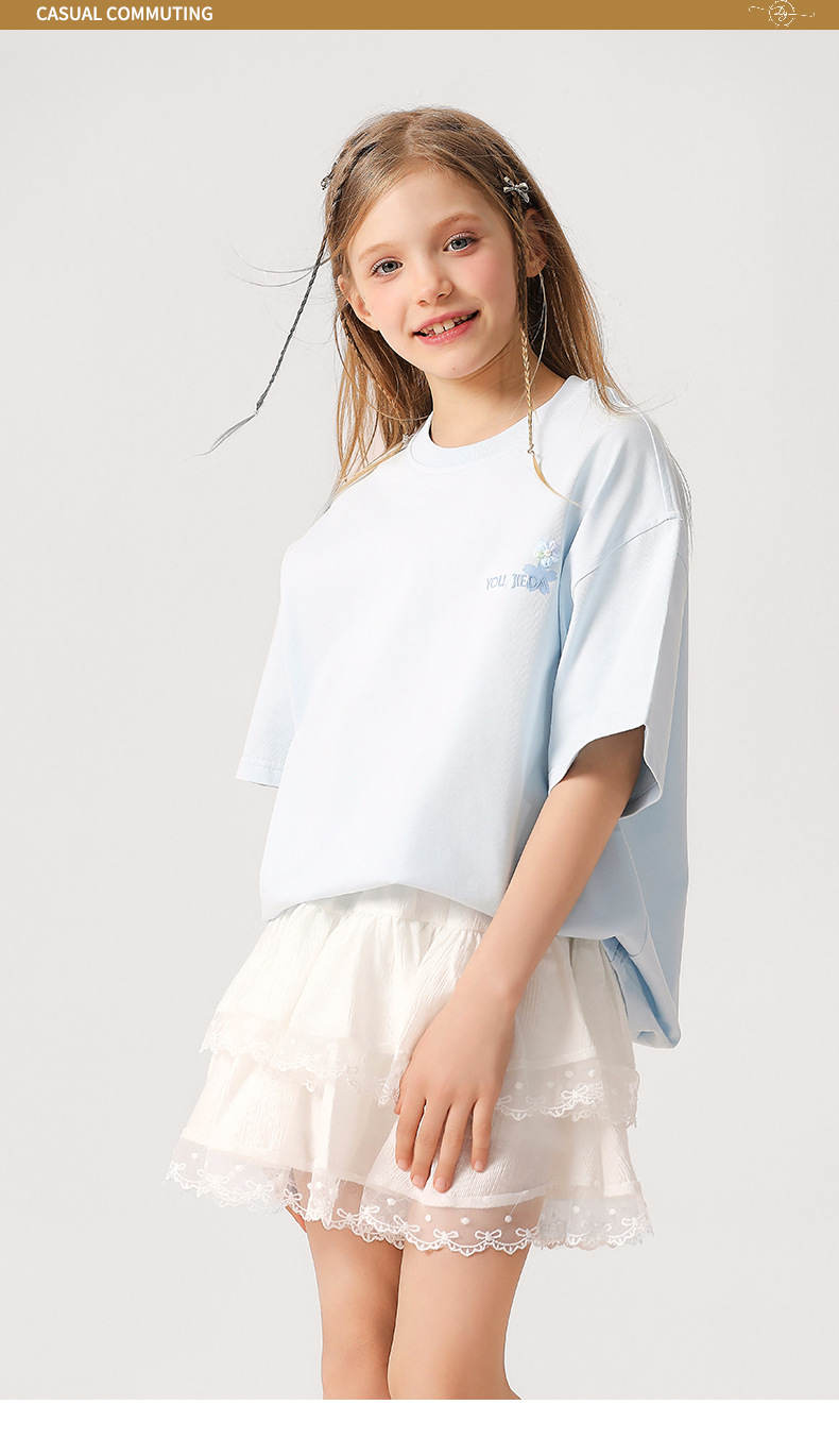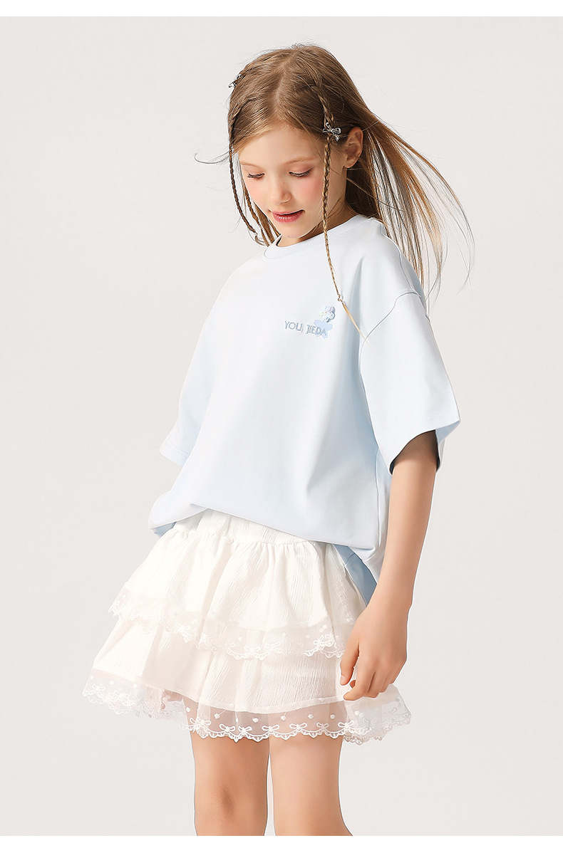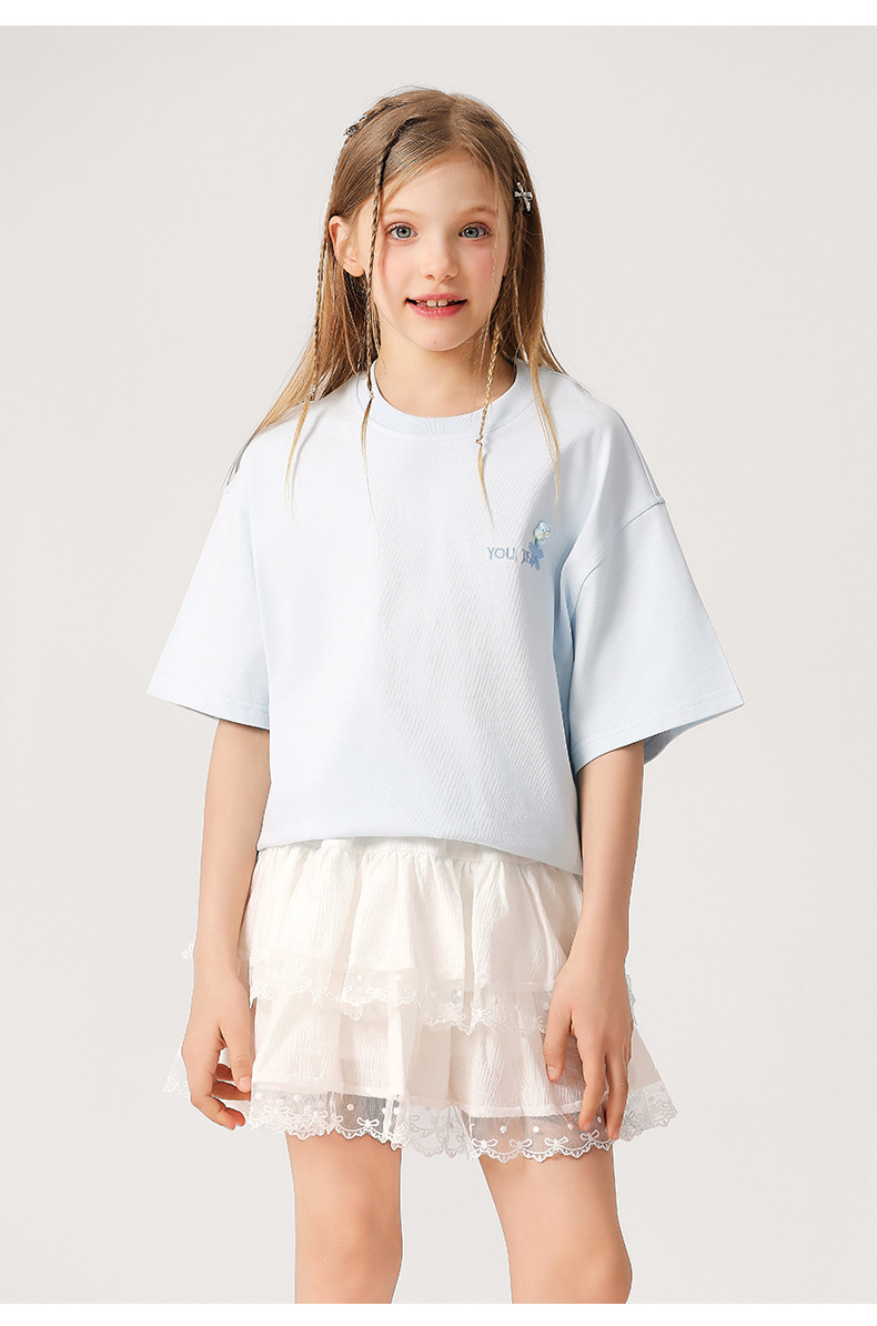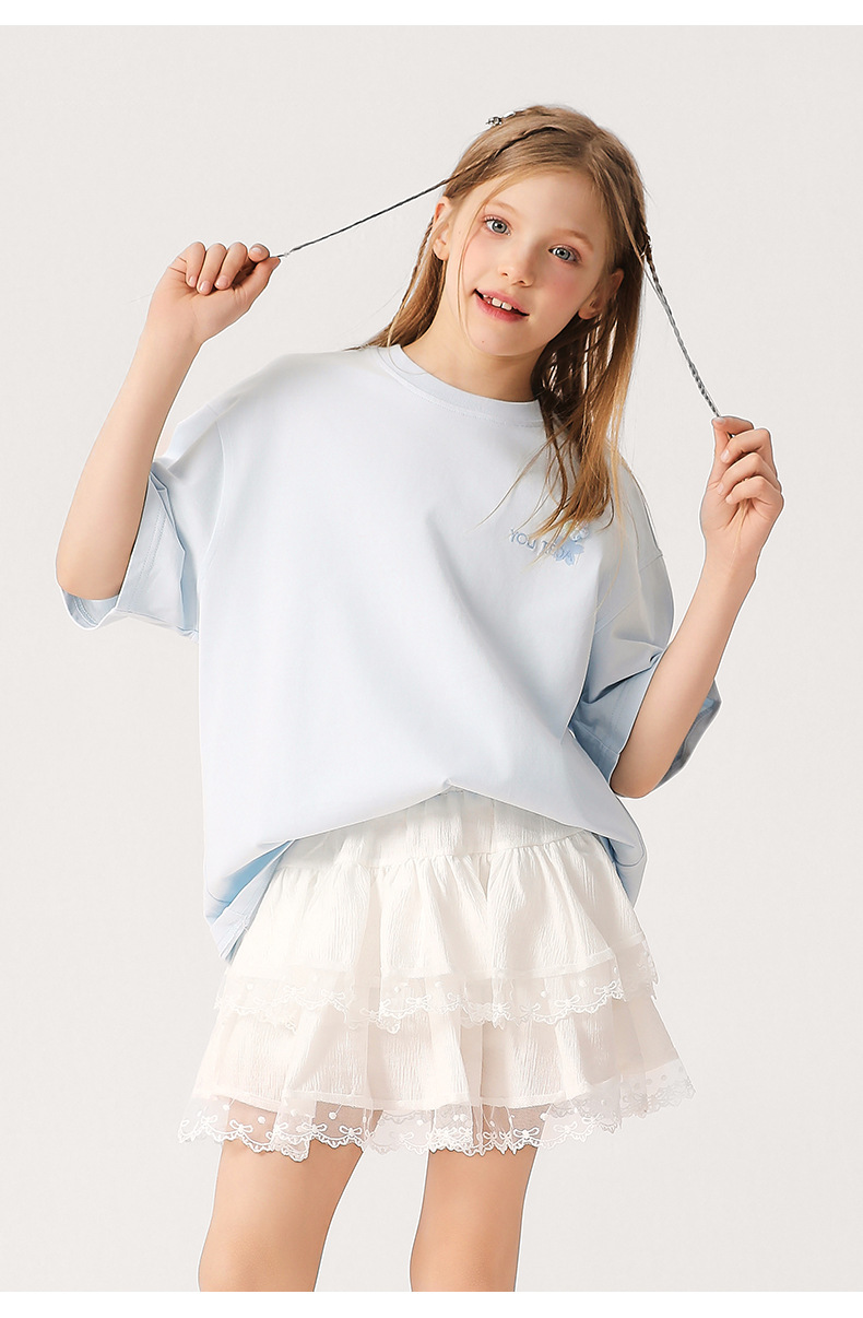 소녀 3 차원 편지 수 놓은 티셔츠 2025 새로운 스타일 중대형 어린이 서양식 여름 반팔 통기성 학생 얇은 탑