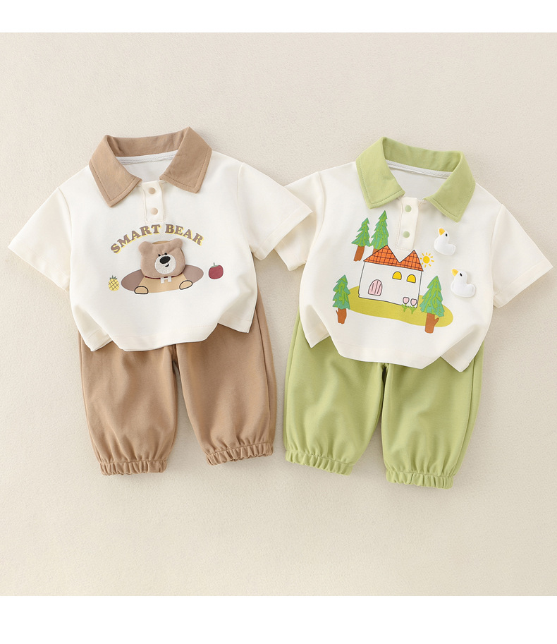 어린이 의류 소년 여름 의류 클래스 순수한면 아기 셔츠 및 바지 분할 세트 착용 방지 통기성 아기 외복 옷스토어 가기