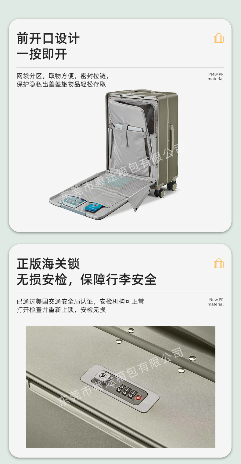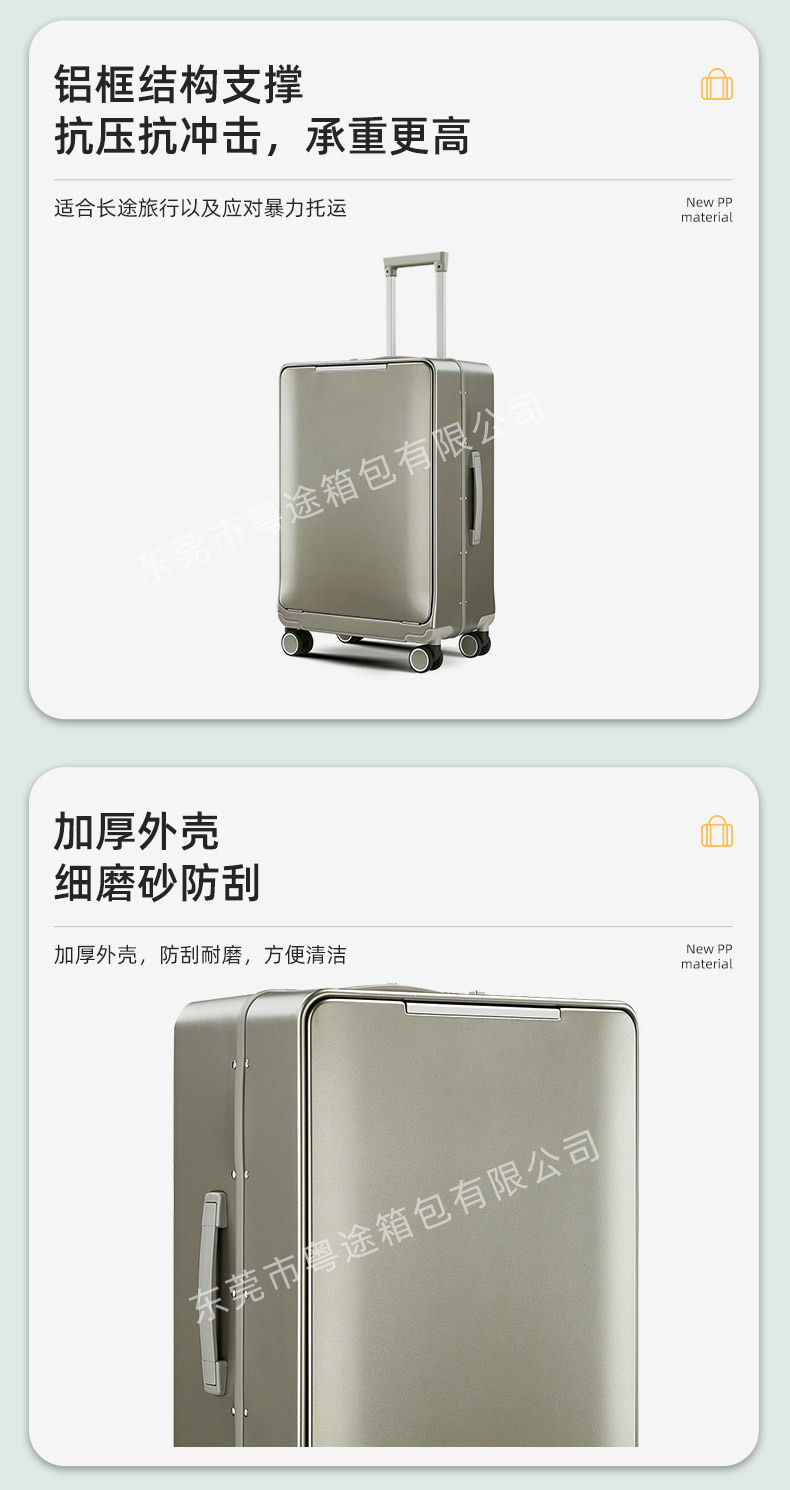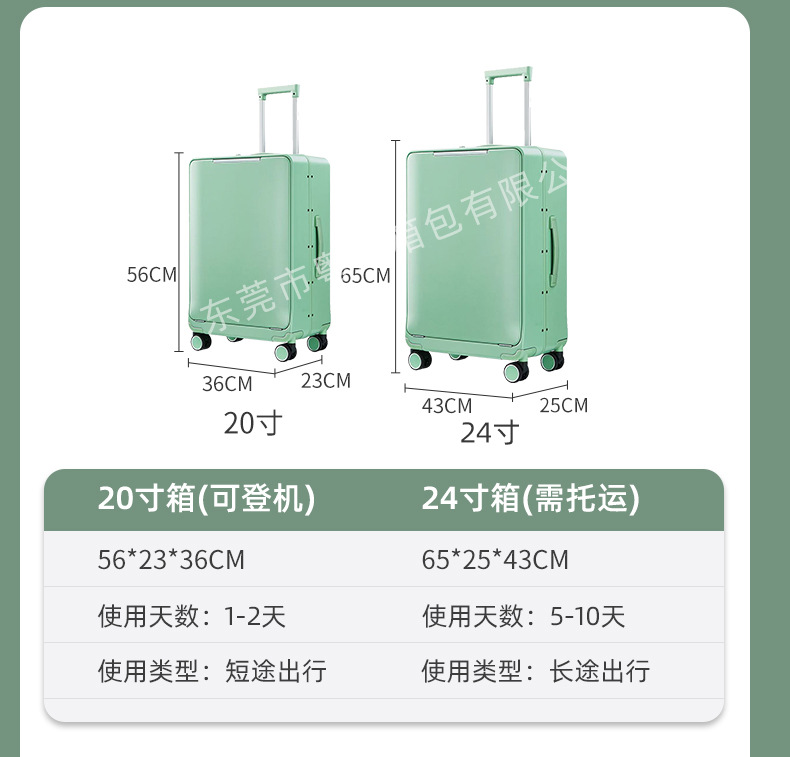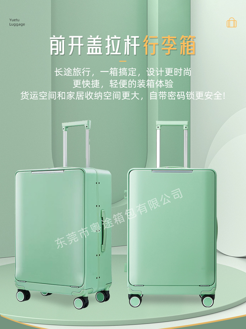 원클릭으로 열 수 있는 전면 개방형 비즈니스 가방, 컴퓨터 비밀번호 상자, 방수 및 내마모성 알루미늄 프레임 트롤리 가방