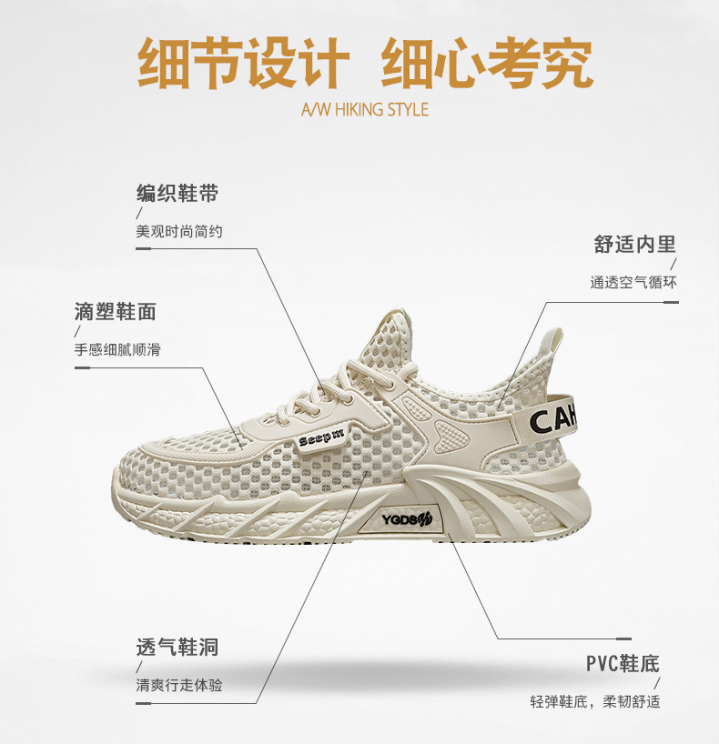 메쉬 남성 신발 여름 통기성 메쉬 매일 모든 경기 캐주얼 두꺼운 단색 스포츠 스타일 새로운 스타일 남성 트렌디 신발스토어 가기