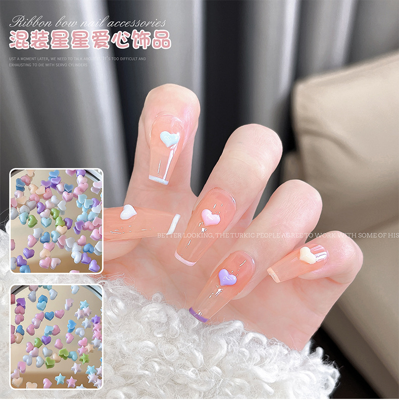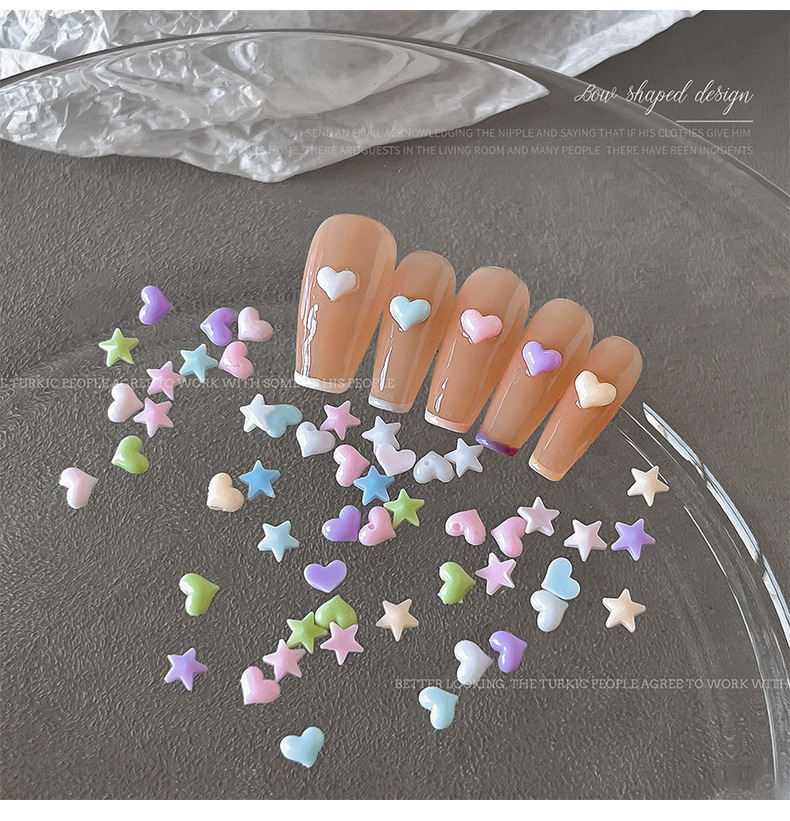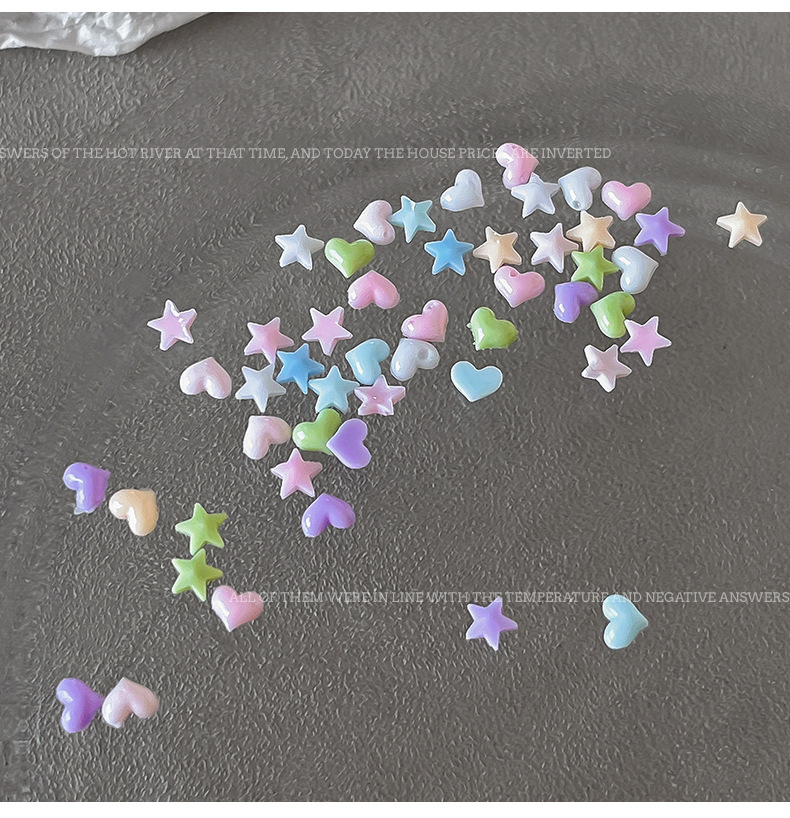도파민 미니 러브 네일 아트 쥬얼리 혼합 마카롱 컬러 스타 작은 하트 수지 네일 다이아몬드 장식
