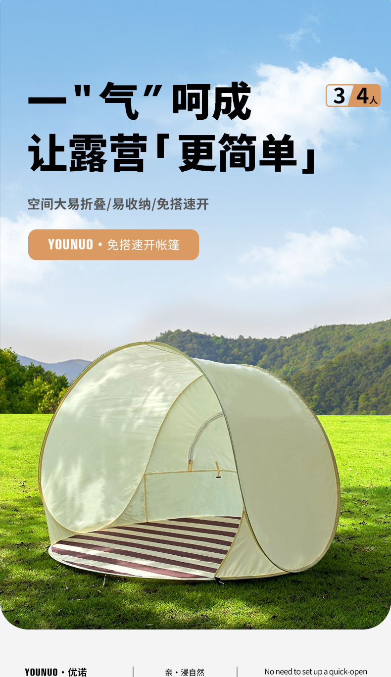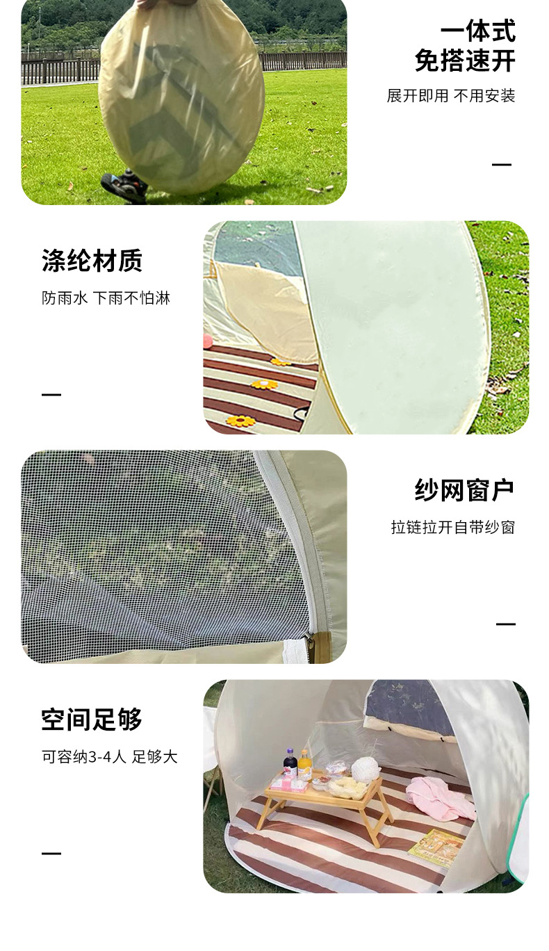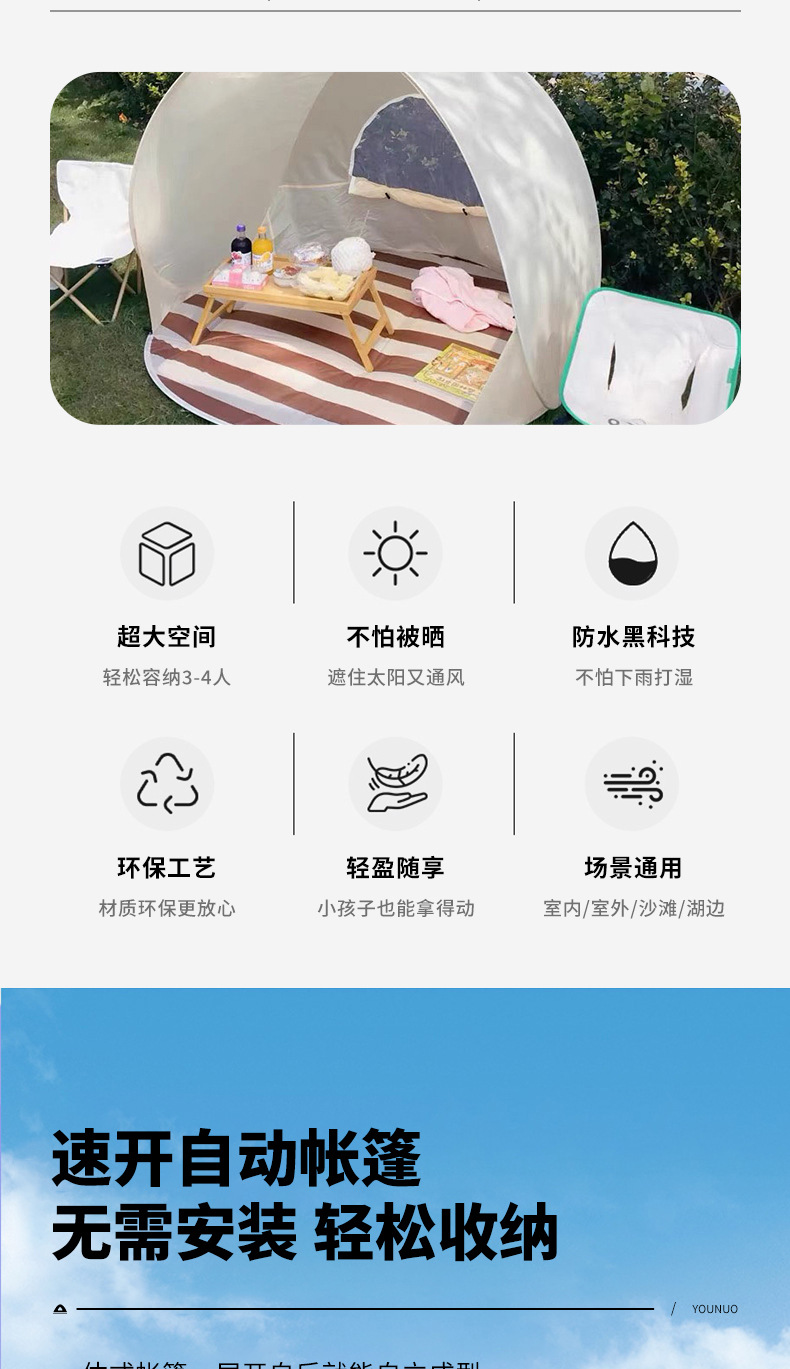편리한 빠른 오프닝 해변 텐트 야외 캠핑 3-4 큰 공간 차양 방수 휴대용 접이식 텐트스토어 가기