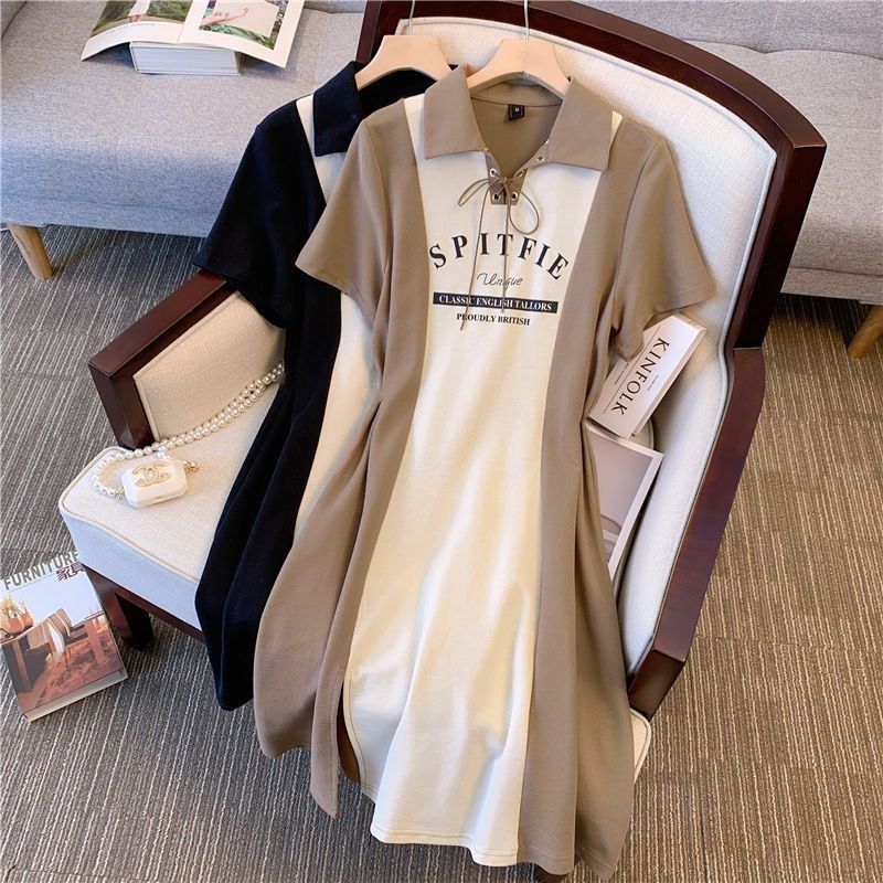 플러스 사이즈 허리 슬리밍 스플라이스 슬릿 스커트 롱 무릎 위 살짝 뚱뚱한 여성 여름 셔츠 루즈 드레스