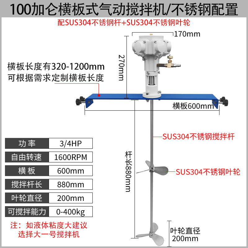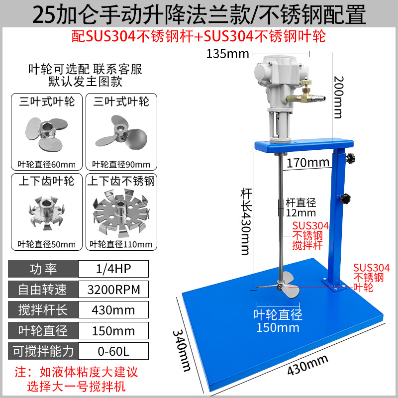 • 100갤런 수동 리프트 3날 스테인리스 스틸