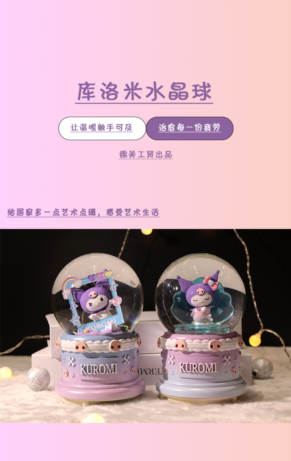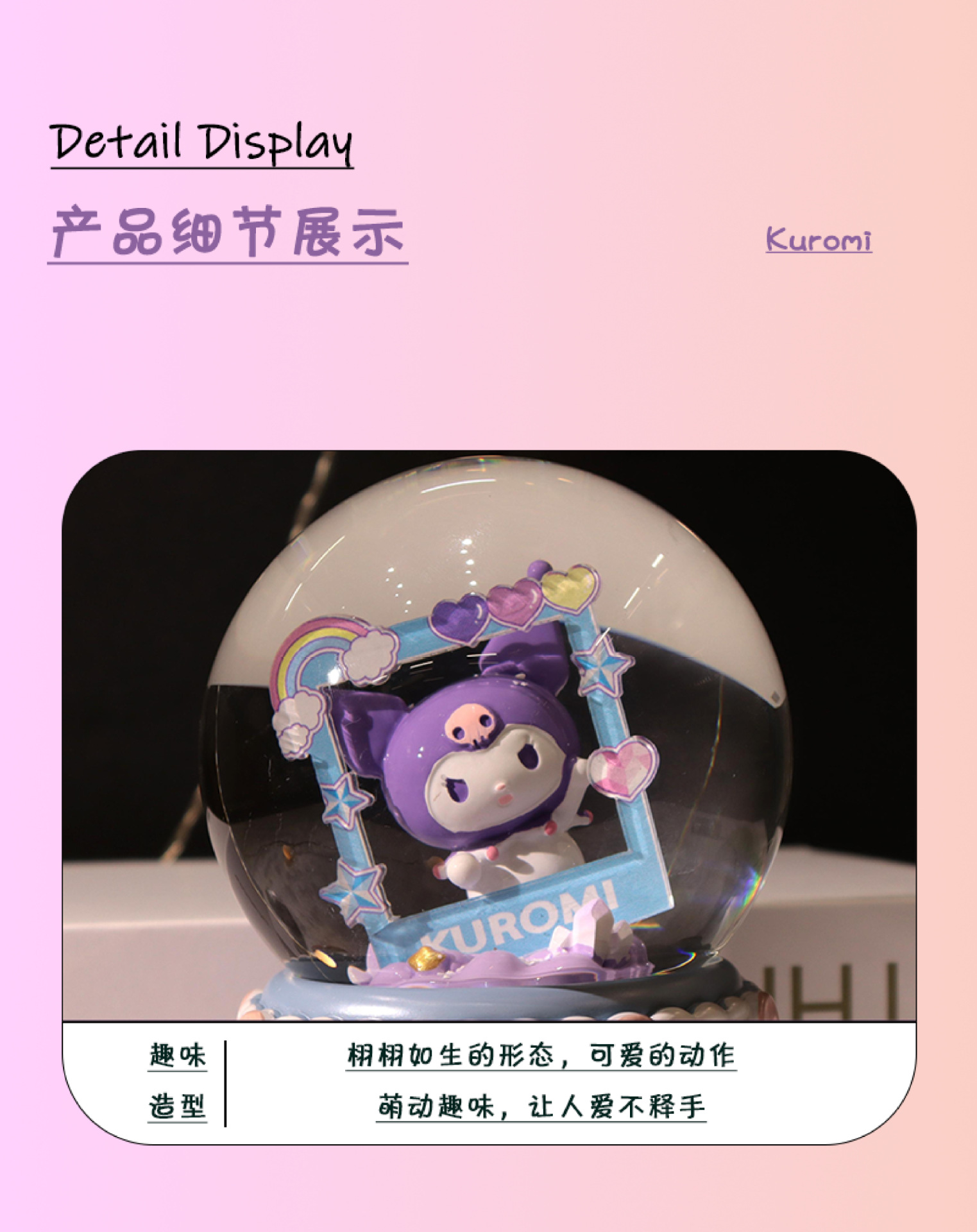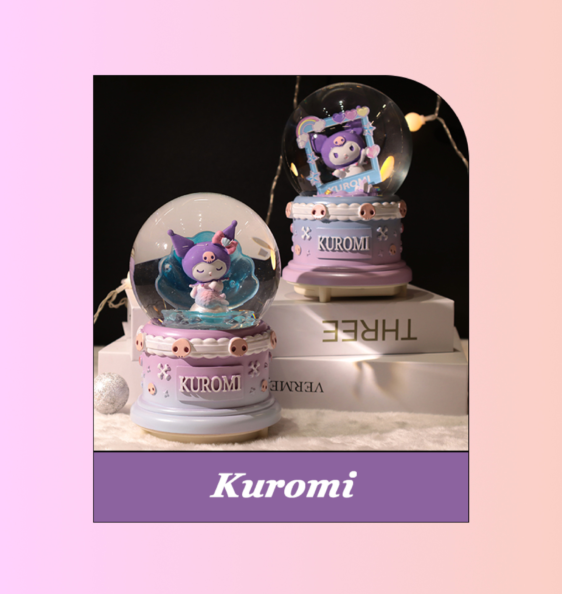 Kuromi 대형 수정 구슬 뮤직 박스 공장 직접 판매 침실 음악 조명 분위기 장식 장식품스토어 가기