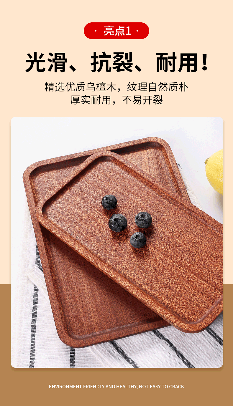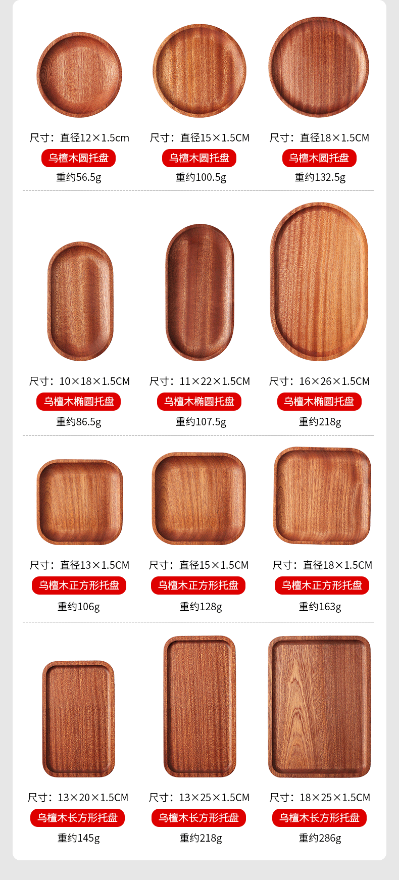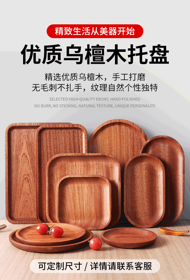 Ebony Sandalwood 트레이 솔리드 우드 직사각형 가정용 식기 티 컵 플레이트 페탈 플레이트 웨스턴 푸드 라운드 플레이트스토어 가기