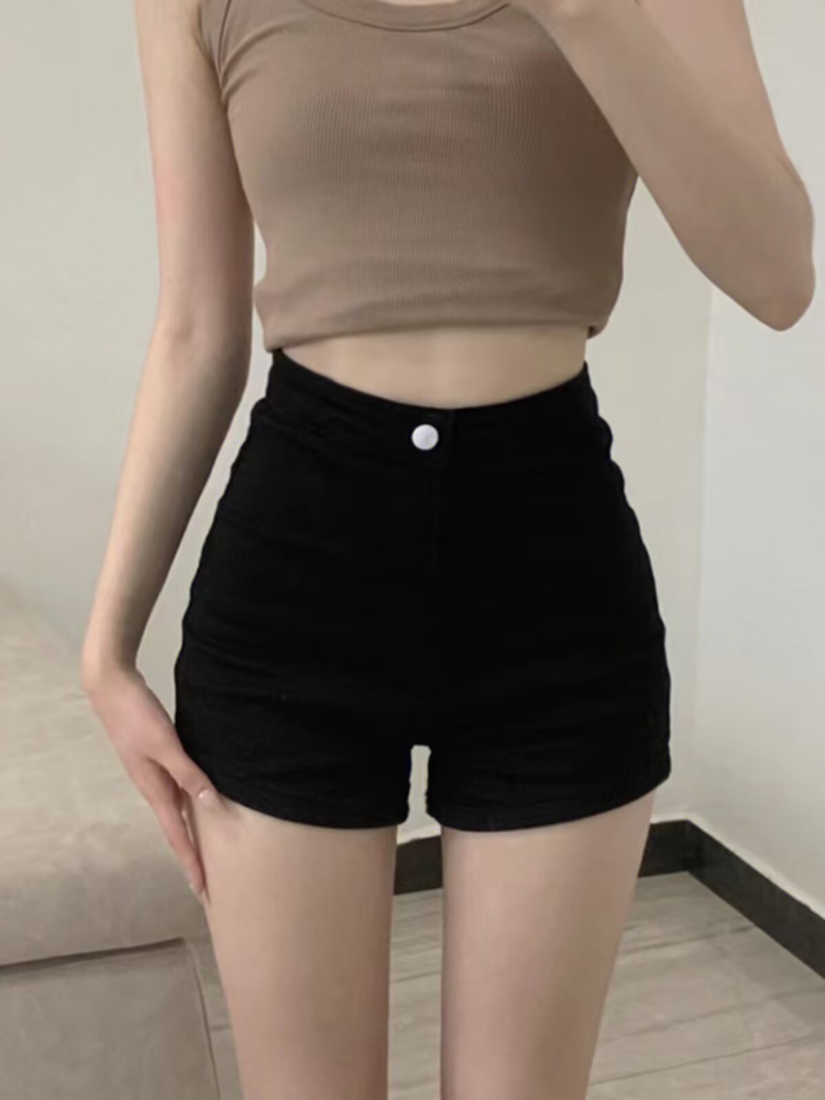 새로운 대외 무역 전자 상거래 스트레치 데님 반바지 여성의 여름 얇은 직선 슬리밍 플러스 사이즈 높은 허리 A 자형 핫 바지스토어 가기