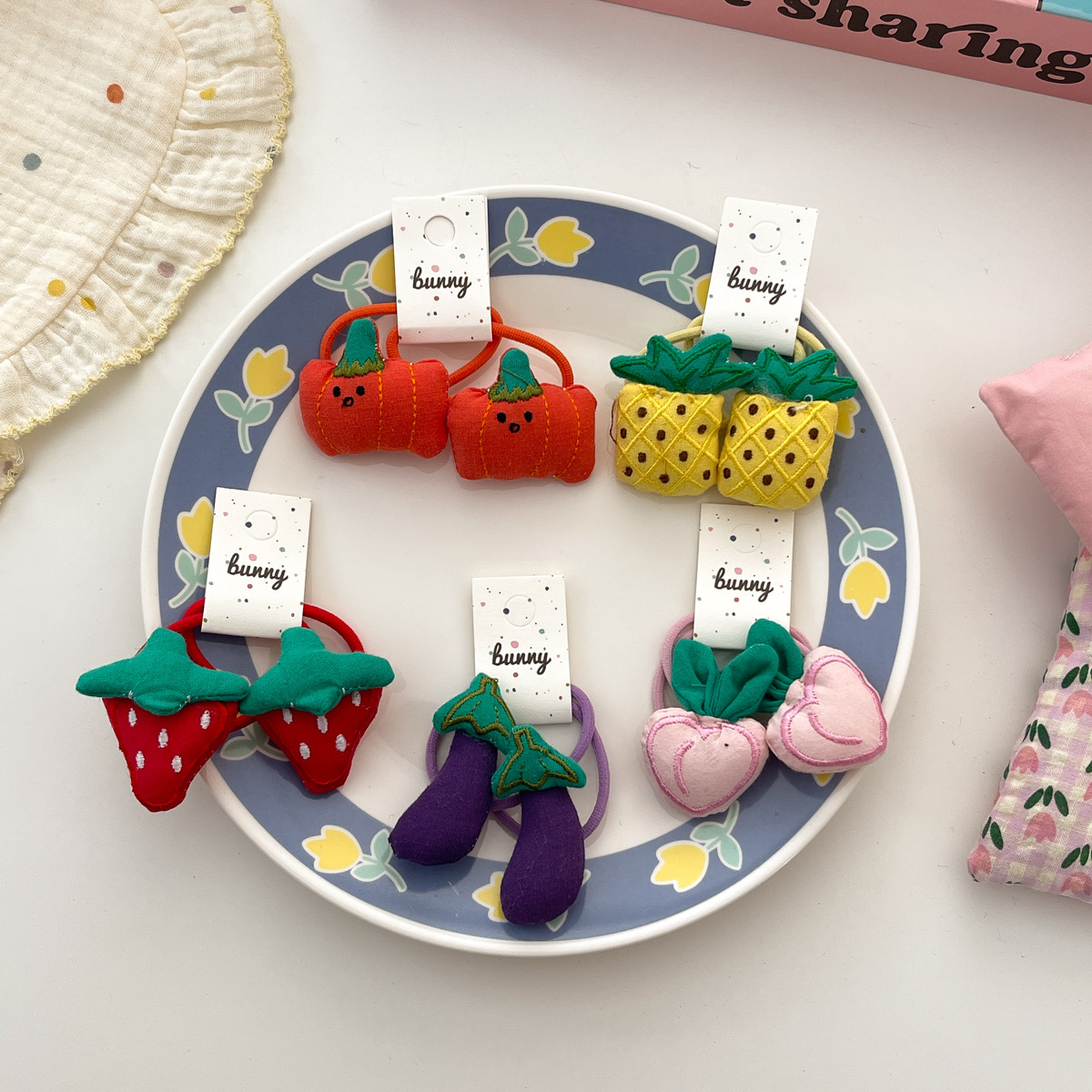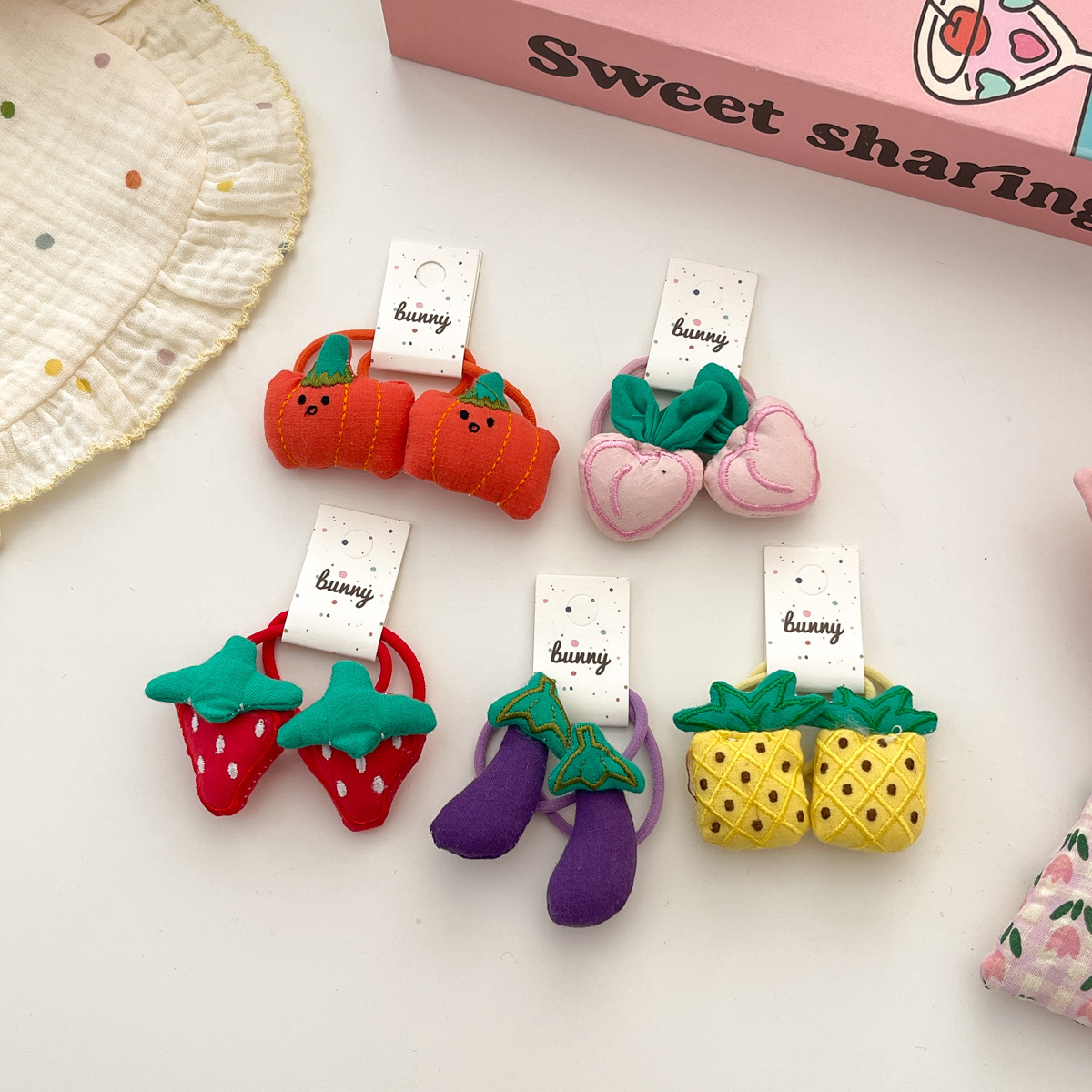 한국 손으로 만든 직물 과일 및 야채 헤어 링 아기 귀여운 헤어 로프 어린이 헤어 액세서리 높은 스트레치 헤어 텐더를 해치지 않음