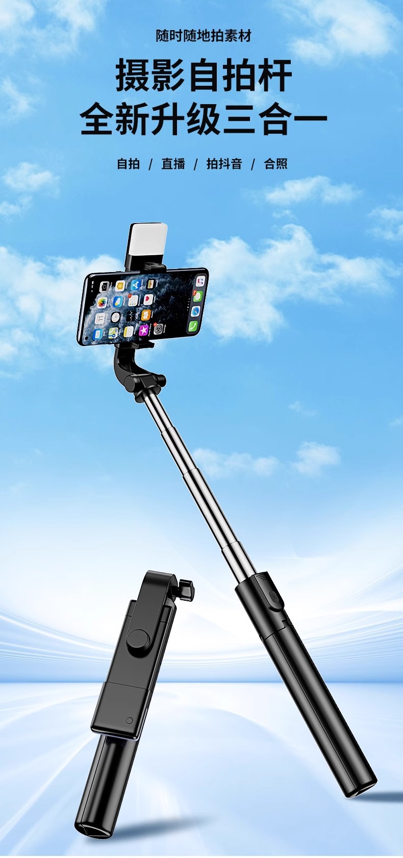 셀카봉 2025 새로운 사진 도구 범용 휴대폰 블루투스 손떨림 방지 라이브 방송 브래킷 필 라이트 여행