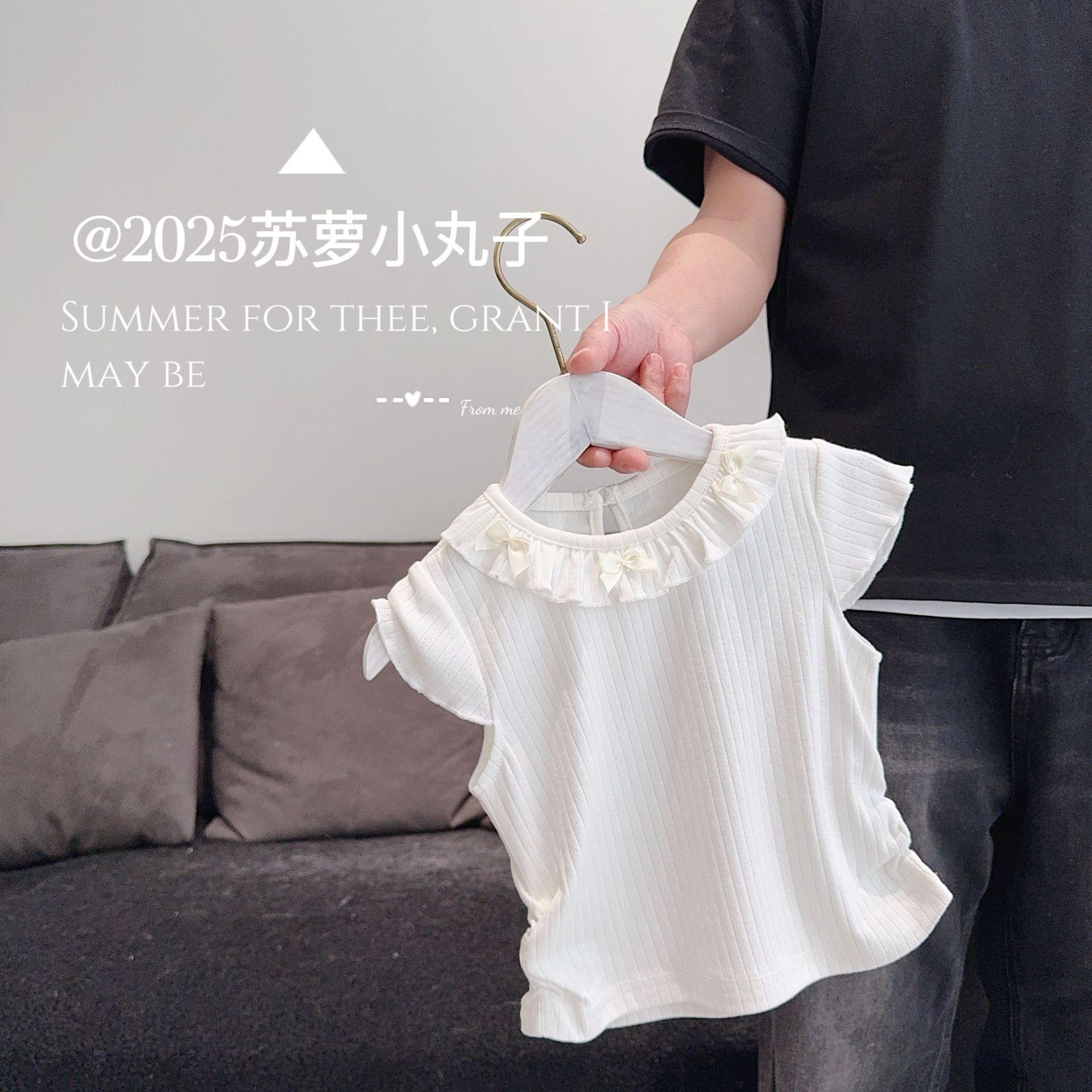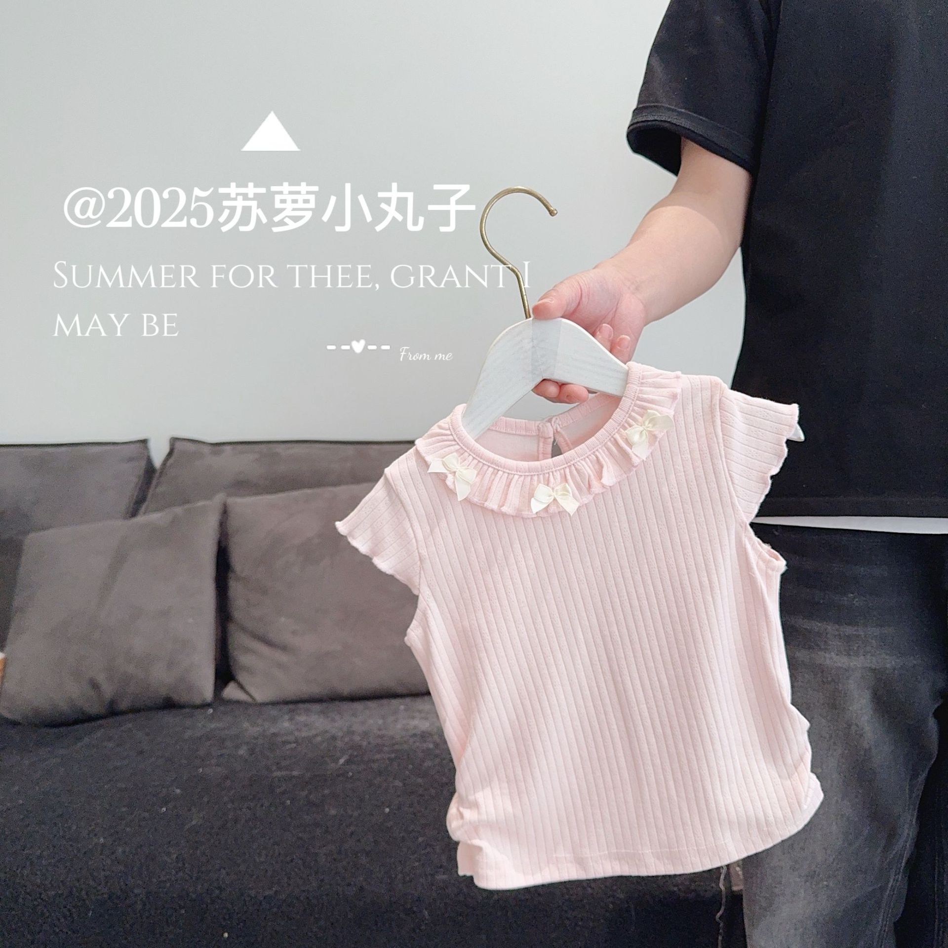 여름 2025 0-3 세 소녀 어린이 아기 귀여운 공주 러플 짧은 소매베이스 셔츠 탑 티셔츠